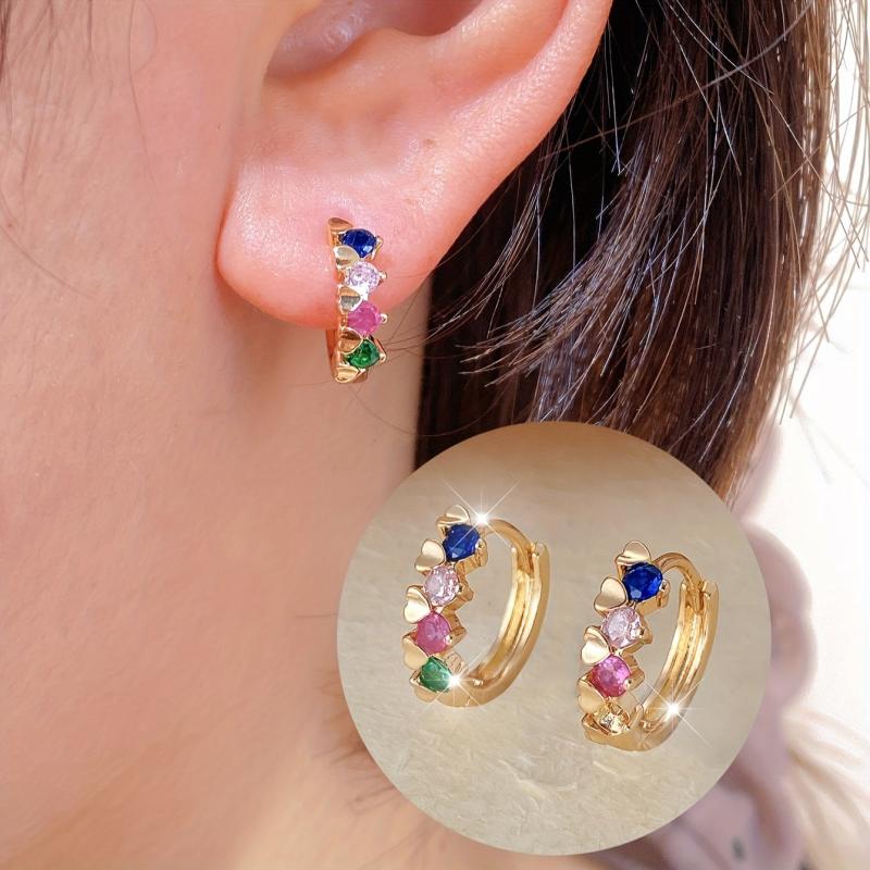 Elevate your style with these versatile hoop earrings. Perfect for everyday wear or formal occasions, featuring green, pink, and clear stones with a touch of gold.