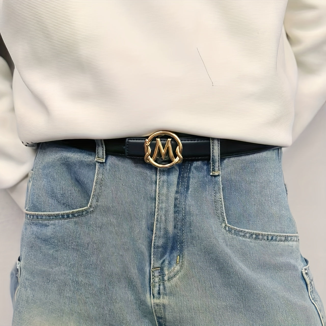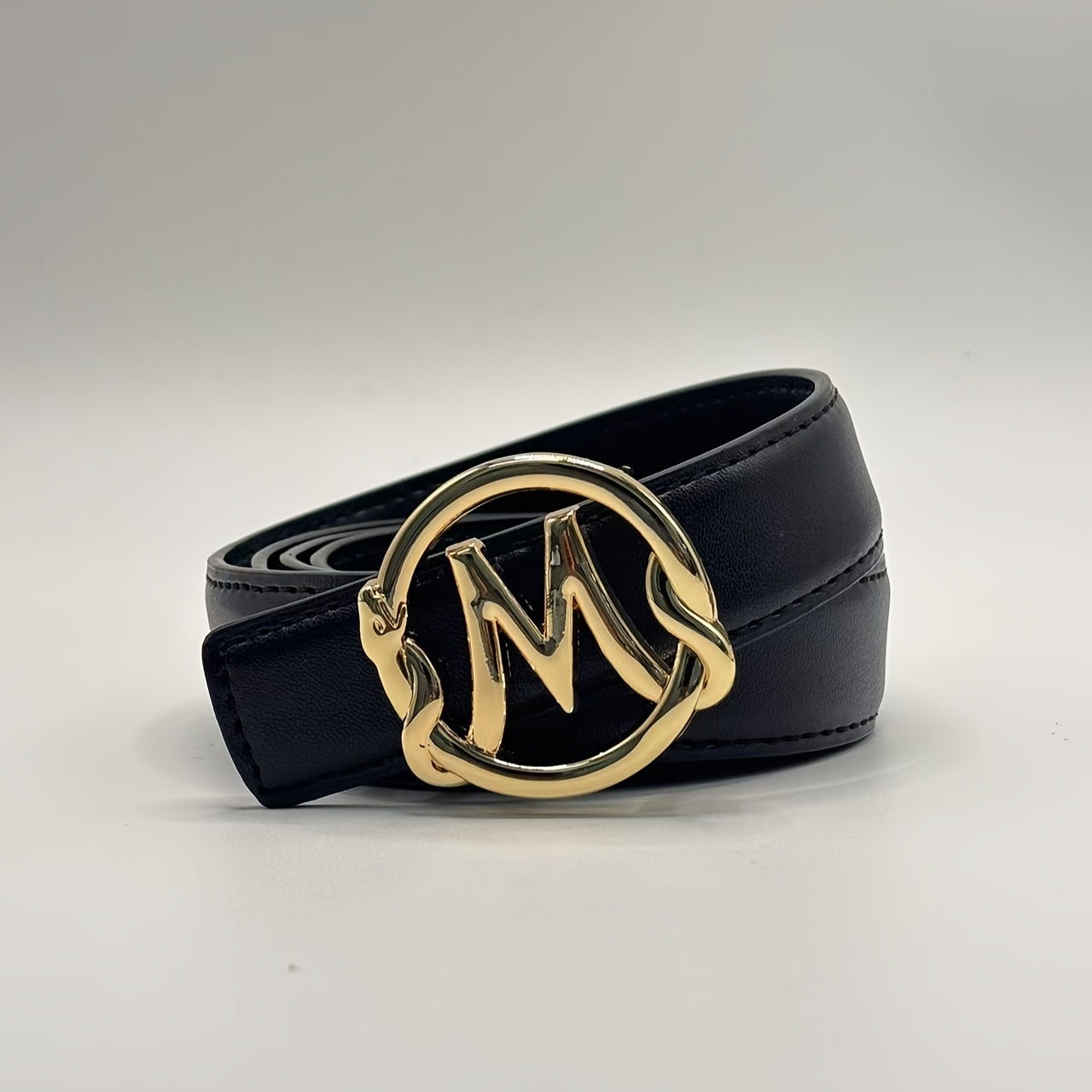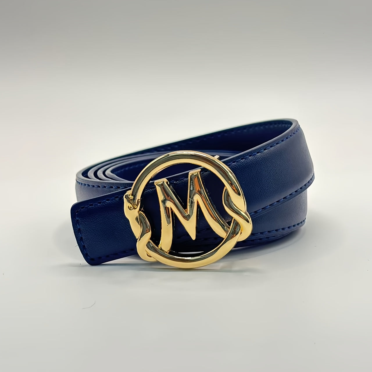 Upgrade your style with this versatile leather belt featuring a golden tone alloy buckle and embossed letter M. Perfect for casual, formal, jeans, dresses, and business attire. An ideal gift for any girl!