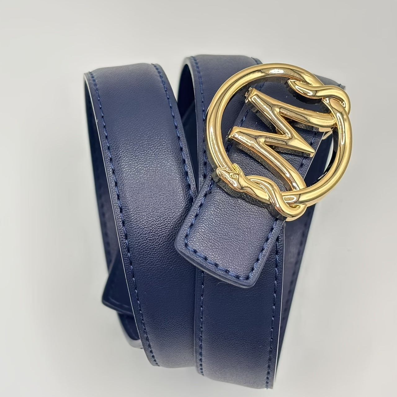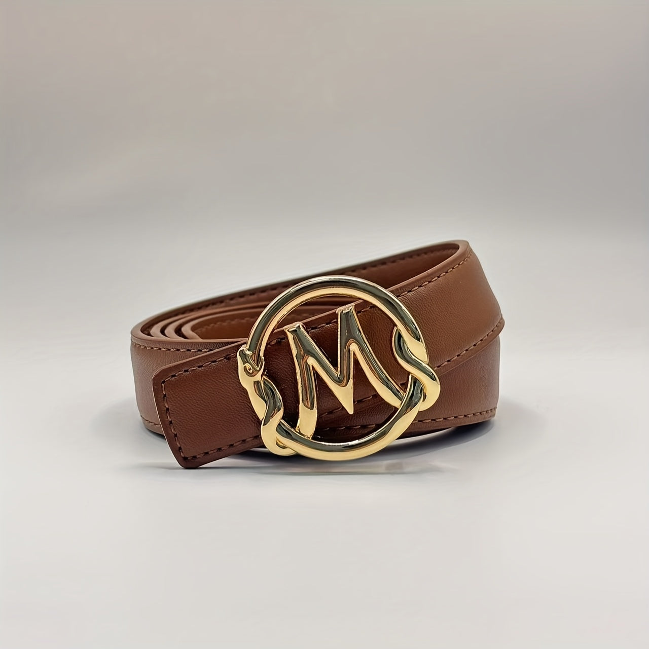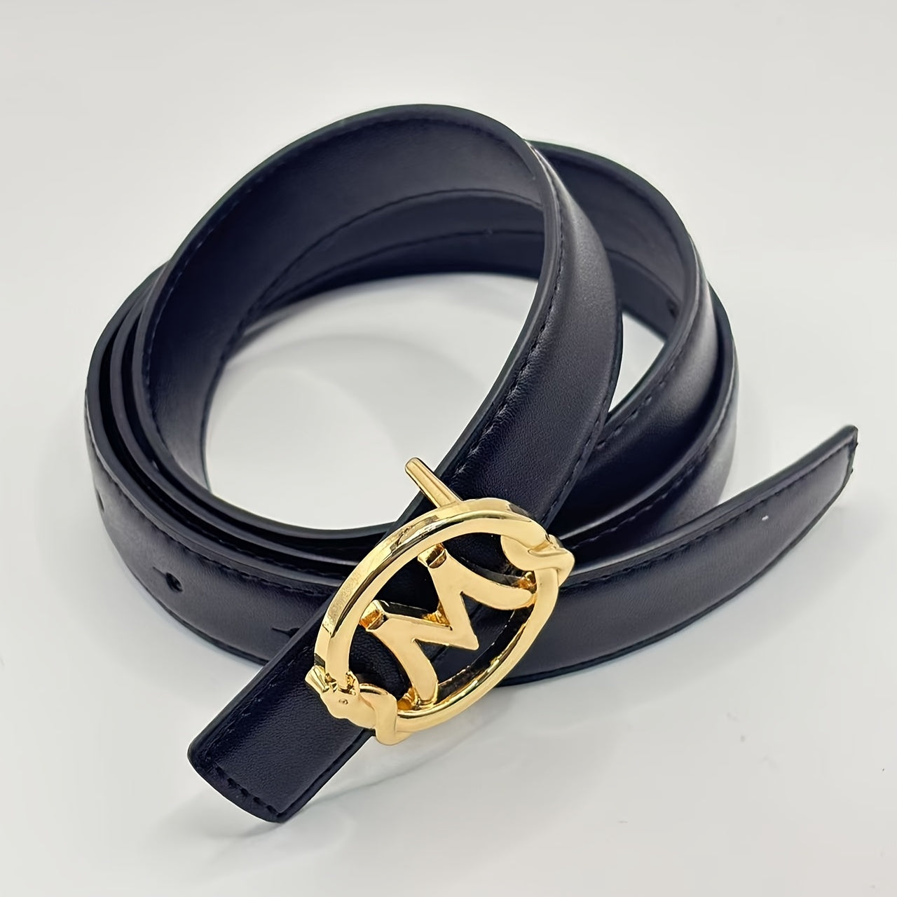 Upgrade your style with this versatile leather belt featuring a golden tone alloy buckle and embossed letter M. Perfect for casual, formal, jeans, dresses, and business attire. An ideal gift for any girl!