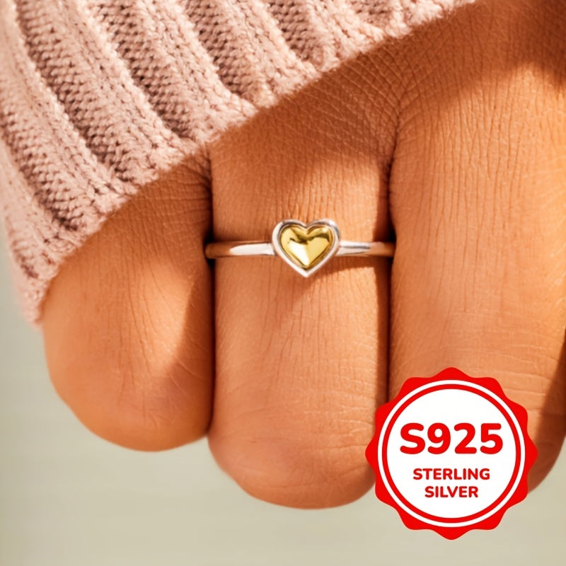 This beautiful promise ring features a two-tone design crafted in 925 sterling silver. It showcases a love-inspired metal style with a fat round band, making it a perfect gift for your loved one.