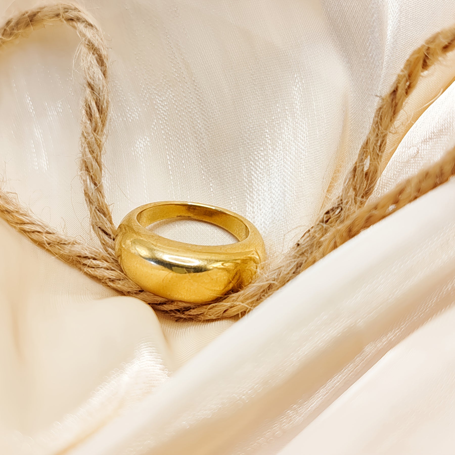 This women's ring features an 18K golden plated curved band made of 316 stainless steel, perfect for daily wear and gift giving in all seasons. Compatible with various styles.
