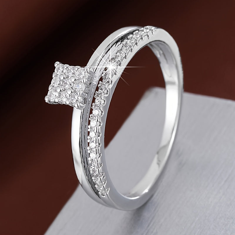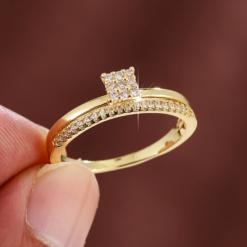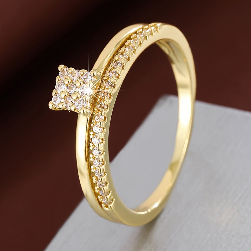 This stylish women's ring features a cubic zirconia inlay on a copper band. It is versatile for daily wear as well as festive occasions.