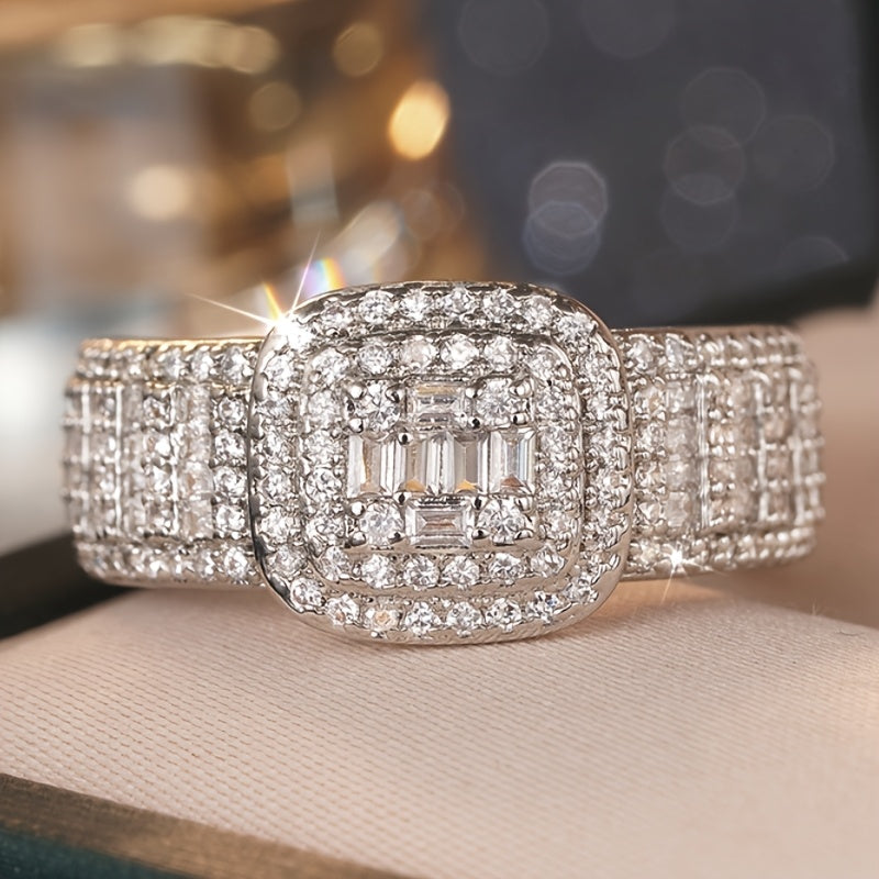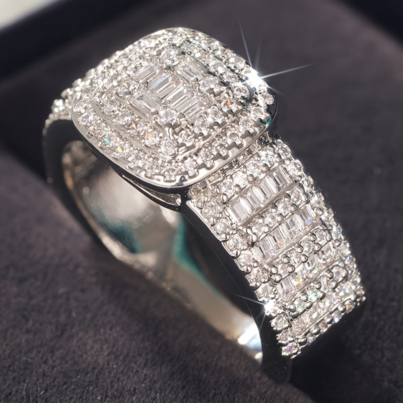 Elegant and timeless, this synthetic zirconia wedding ring features a secret setting design. Perfect for everyday wear or as a special gift.