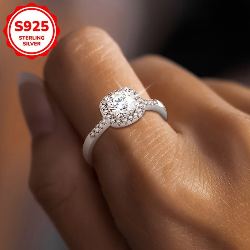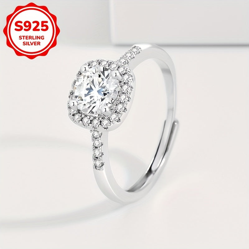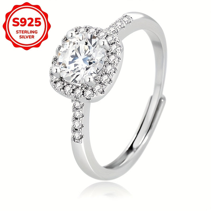 This elegant silver wedding ring features a synthetic zirconia inset, perfect for engagements and daily wear. Made of 925 sterling silver, it exudes a light and refined temperament.