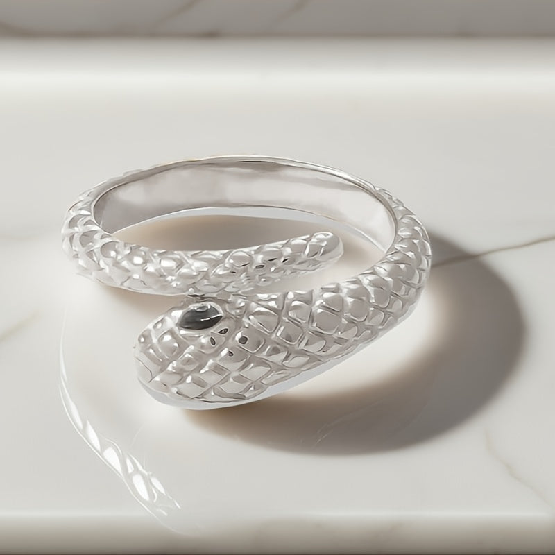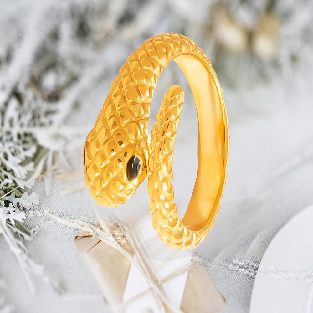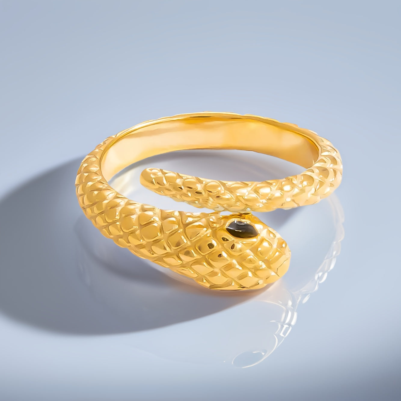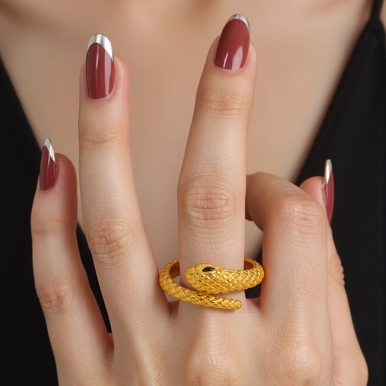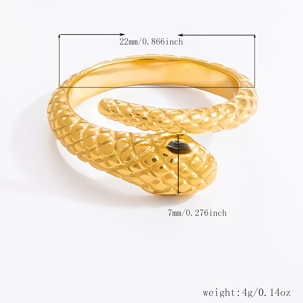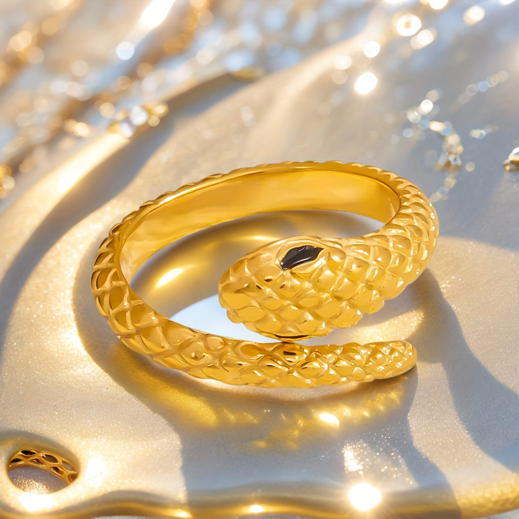 Add a touch of mystique to your look with this stylish snake ring. Made of golden tone stainless steel, this adjustable ring is perfect for daily wear or as a gift for a special woman.