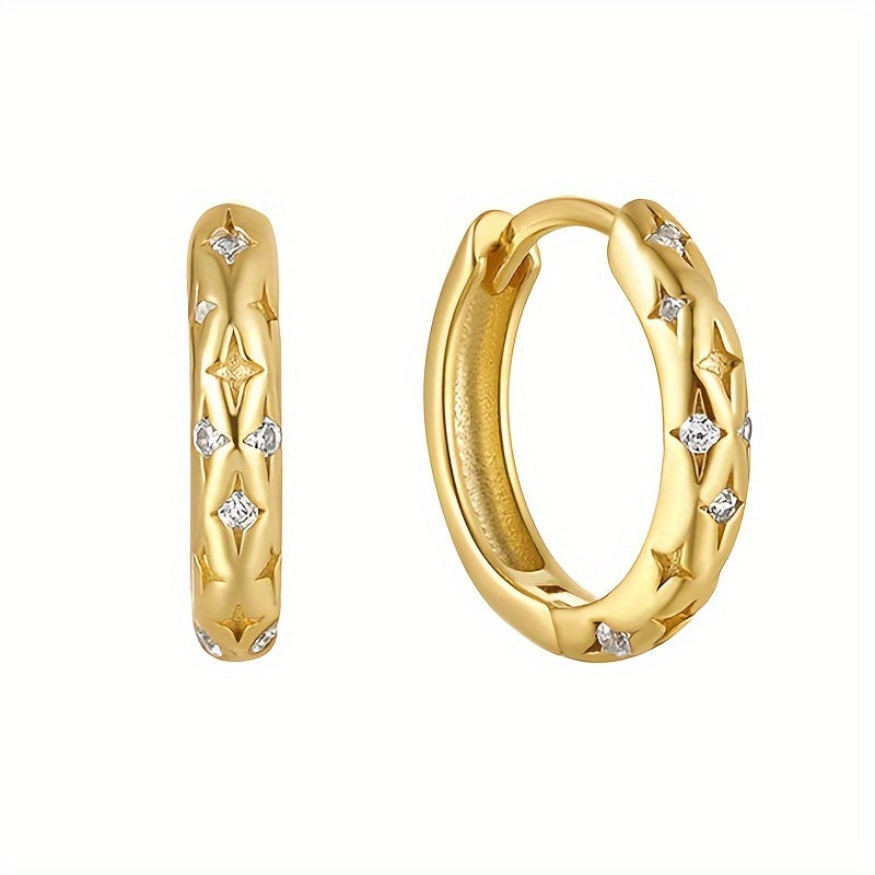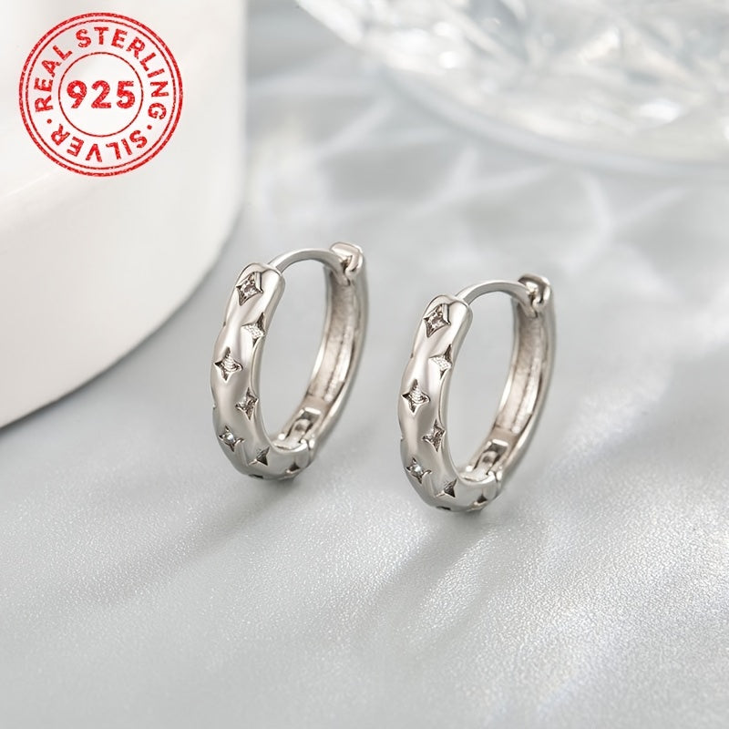 Add some sparkle to your outfit with these fashionable earrings featuring a star design. Made of 925 silver and inlaid with Synthetic Zirconia, these earrings are lightweight and perfect for daily wear or outdoor sports.
