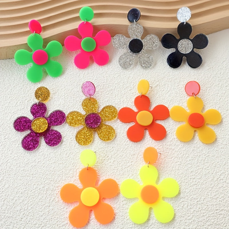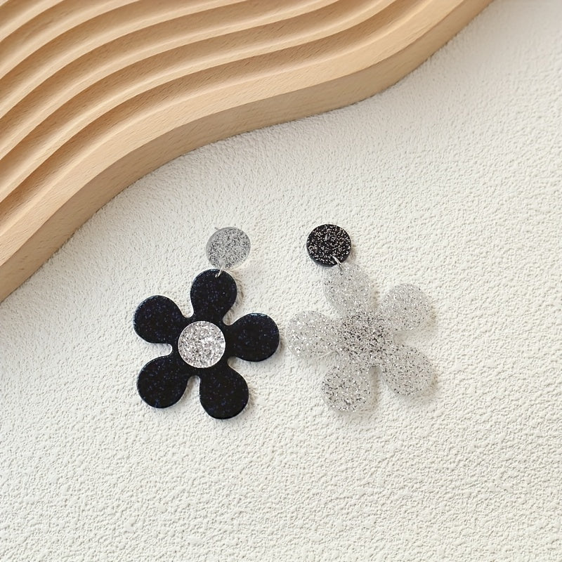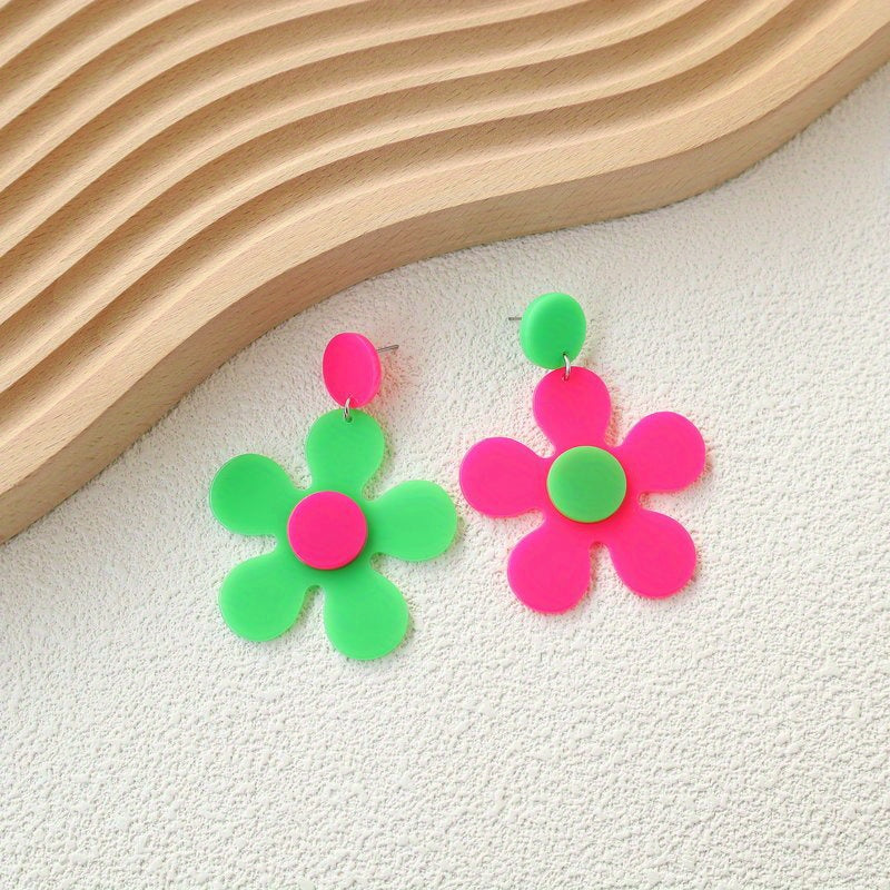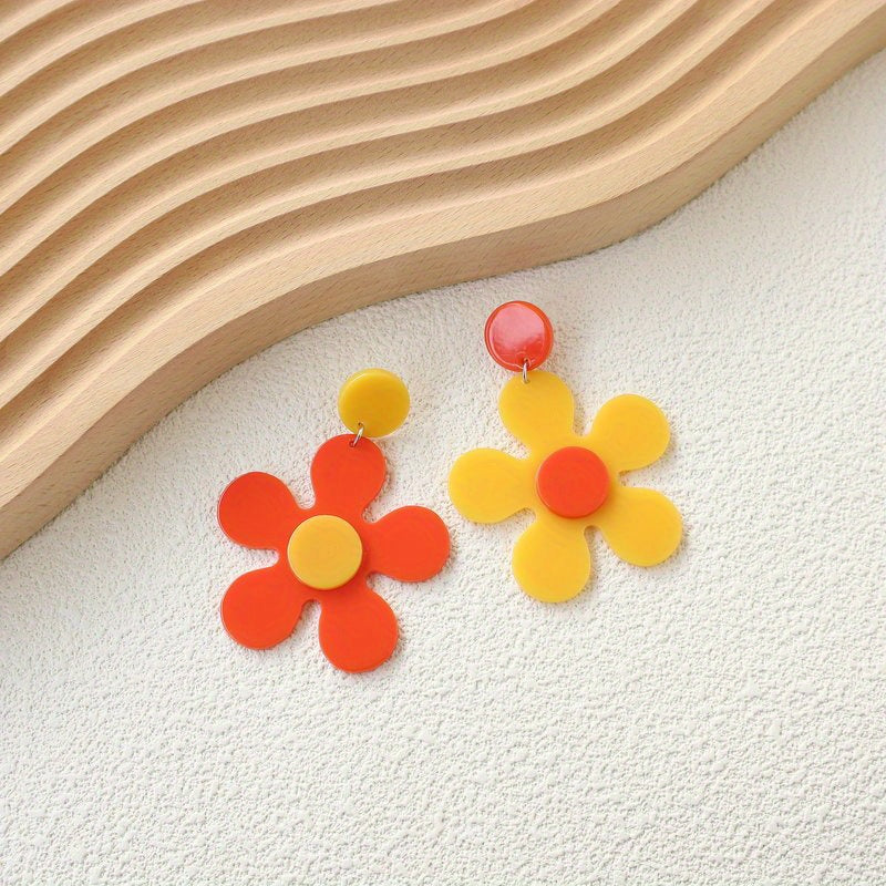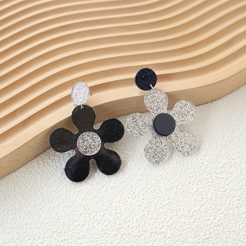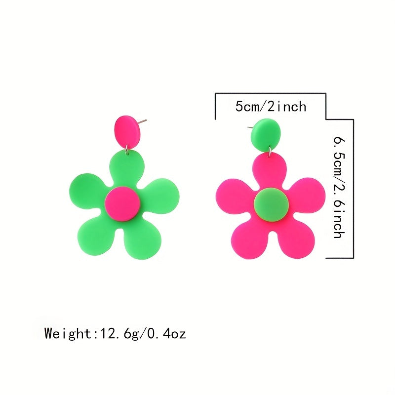 Make a bold statement with these exaggerated contrast flower earrings, perfect for adding a pop of color to your outfit.