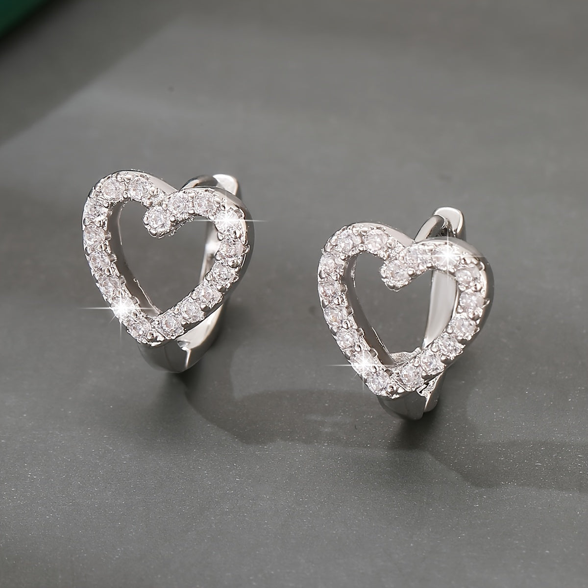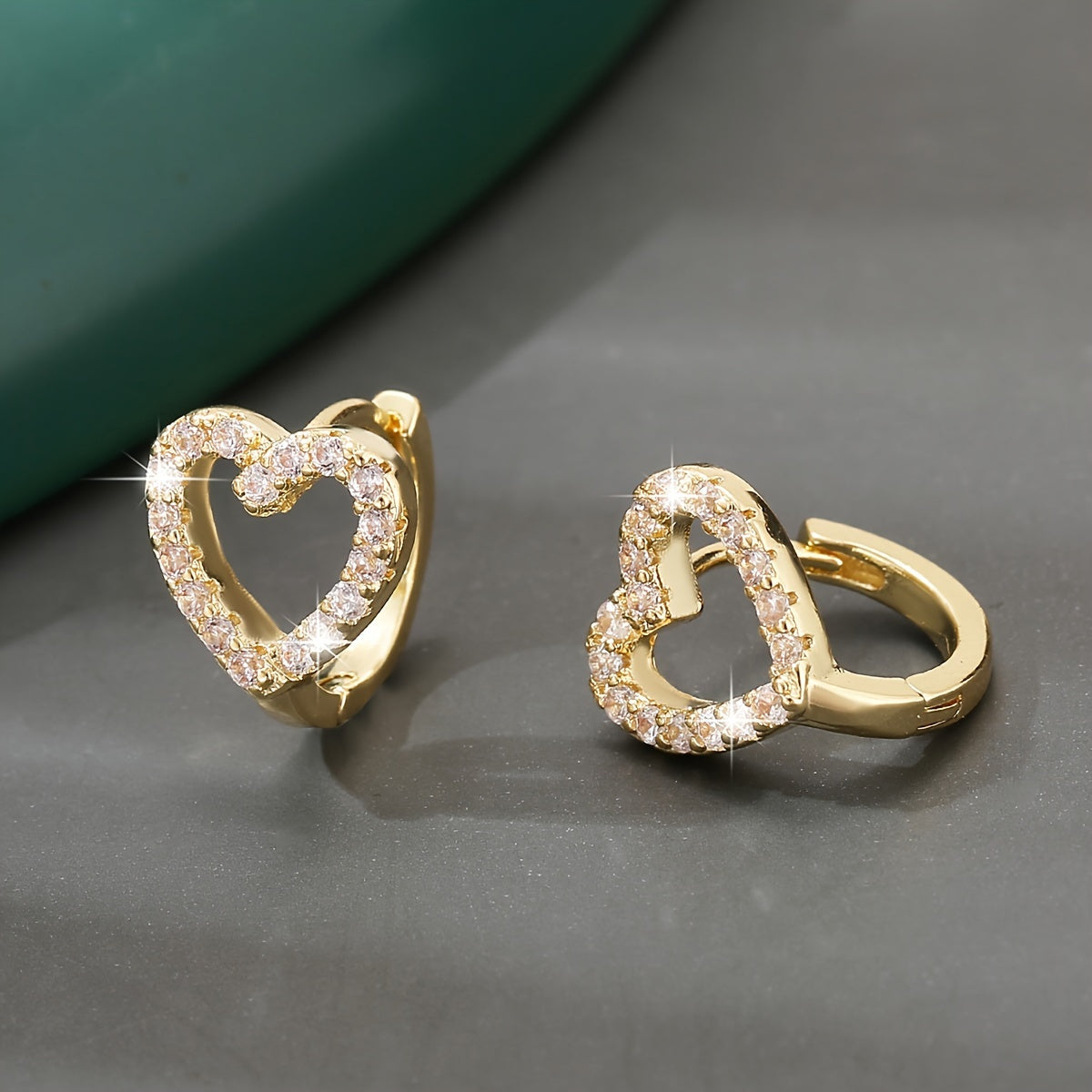 Elevate your style with these chic heart hoop earrings featuring synthetic zirconia inlay. The copper base with no plating offers a sleek look that's perfect for daily wear.