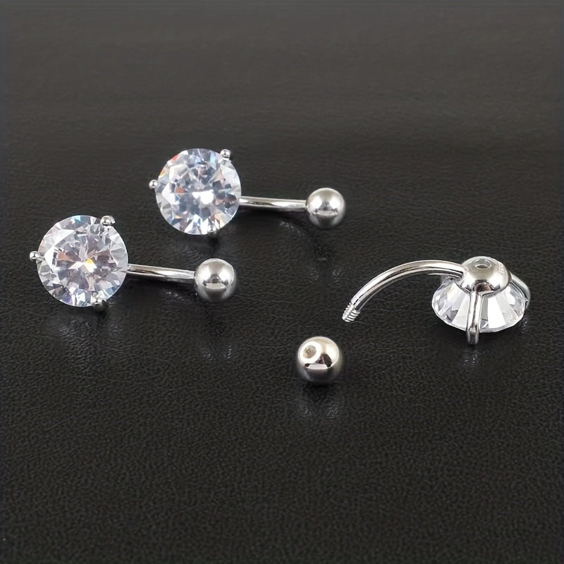 Enhance your belly button with this inlaid zircon belly button ring made of stainless steel. Perfect for body piercing enthusiasts.