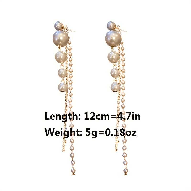 Sparkling Long Pearl Tassel Earrings with Zirconia Studs Elegant Design