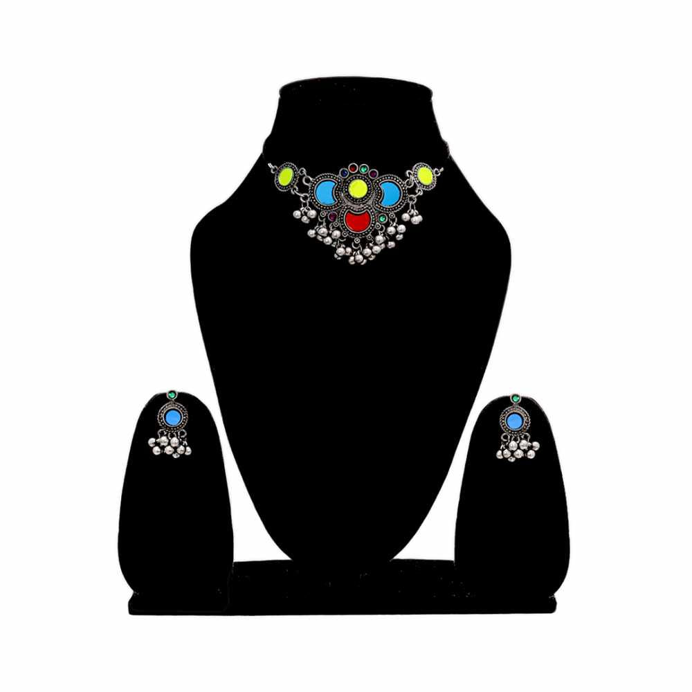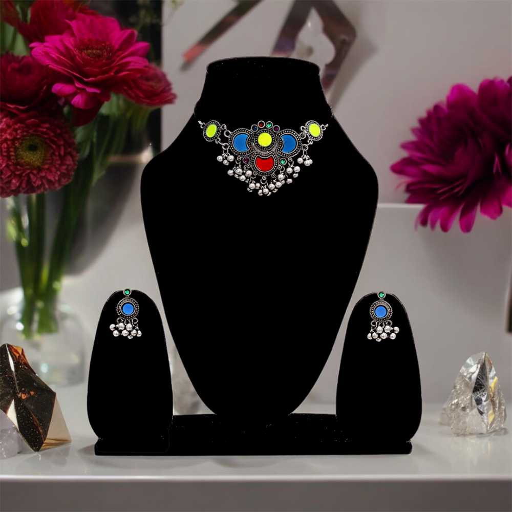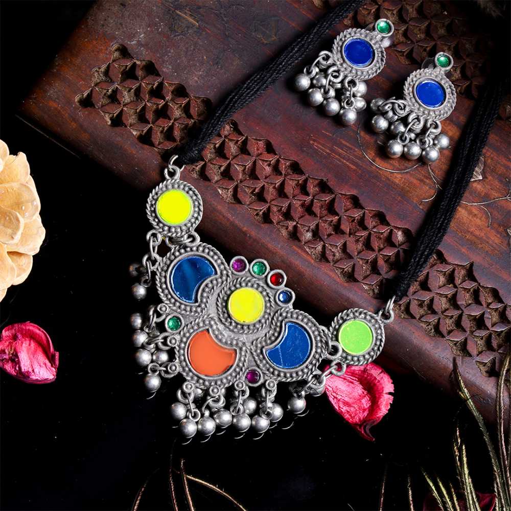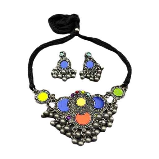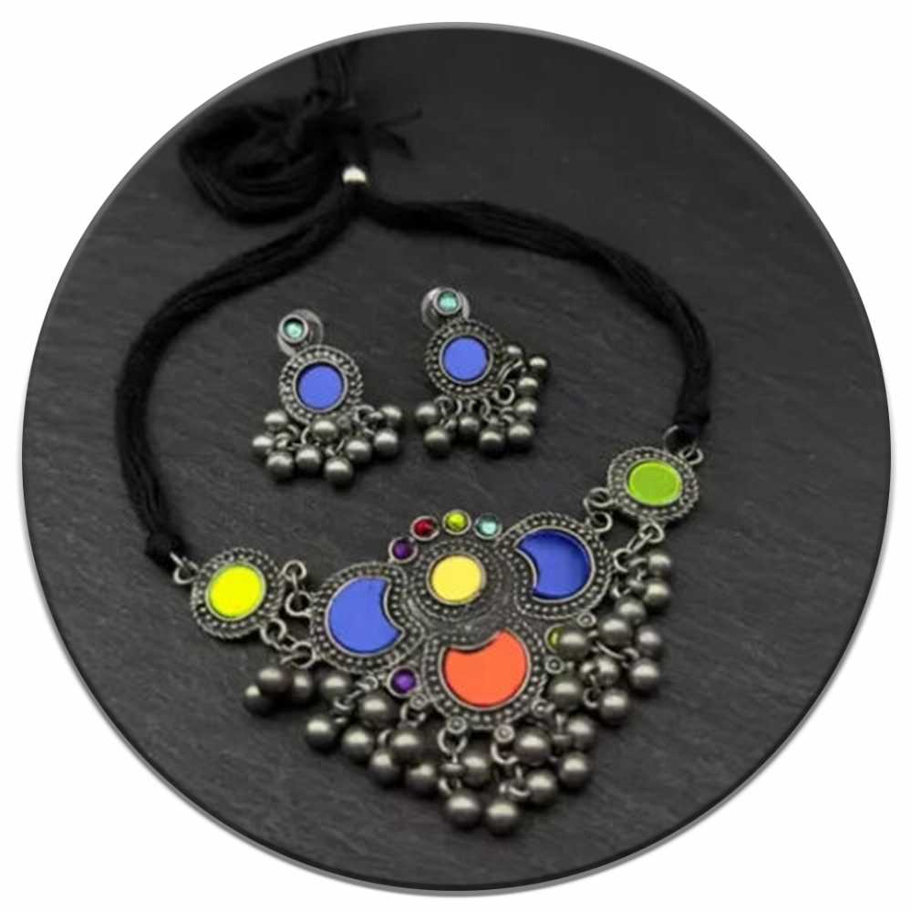 Bling Queen is an affordable fashion jewellery brand with various product types like bracelets, necklaces, earrings, rings, etc. suitable for women, men and kids.Black tassel beads hanging from the choker add a modern and dynamic element, enhancing the overall aesthetic. Adjustable clasp or tie-back string for a comfortable and customizable fit. Matching earrings featuring the same oxidized silver and black tassel bead combination. Often in a drop or dangler style, mirroring the intricate patterns of the choker necklace. Lightweight and designed for ease of wear, suitable for extended periods. Each piece in the set is meticulously handcrafted, showcasing exceptional attention to detail and quality craftsmanship.