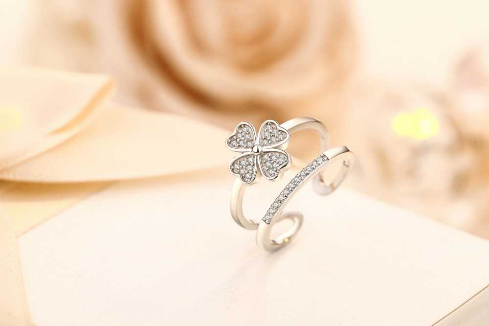 One leaf for hope, one for faith, one for luck and one for love! This four-leaf clover open ring paved with cubic zirconia would be your best gift on your special occasion. Bend down on your knee and professes your lifelong commitment to your loved one with this enchanting sparkle.