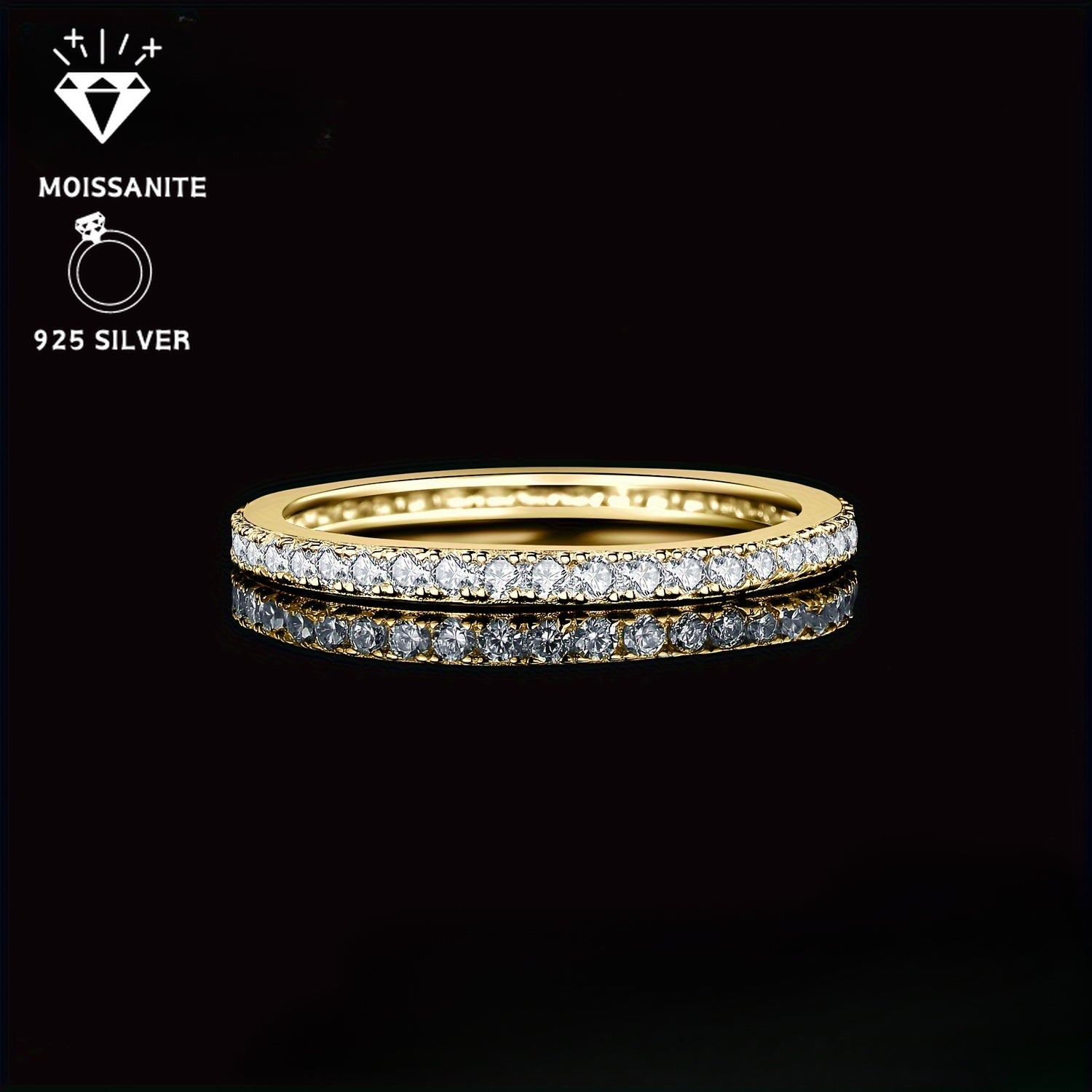 Stunning 1.6g 0.1ct Moissanite set in 925 silver eternity band for a glamorous wedding ring.