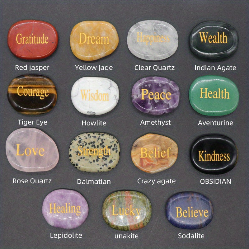 Set of 15 thumb-up shaped worry stones made of natural healing agate crystal in rainbow chakra colors. Perfect for anti-anxiety and relaxation practices.