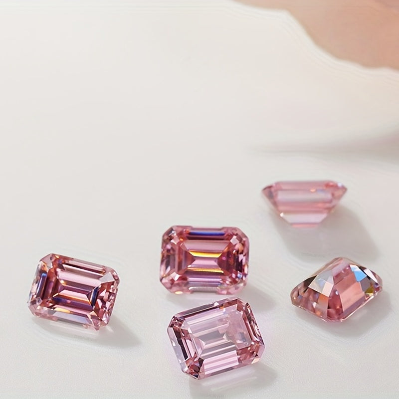 Beautiful rectangular cherry pink emerald cut moissanite loose stones perfect for jewelry making.