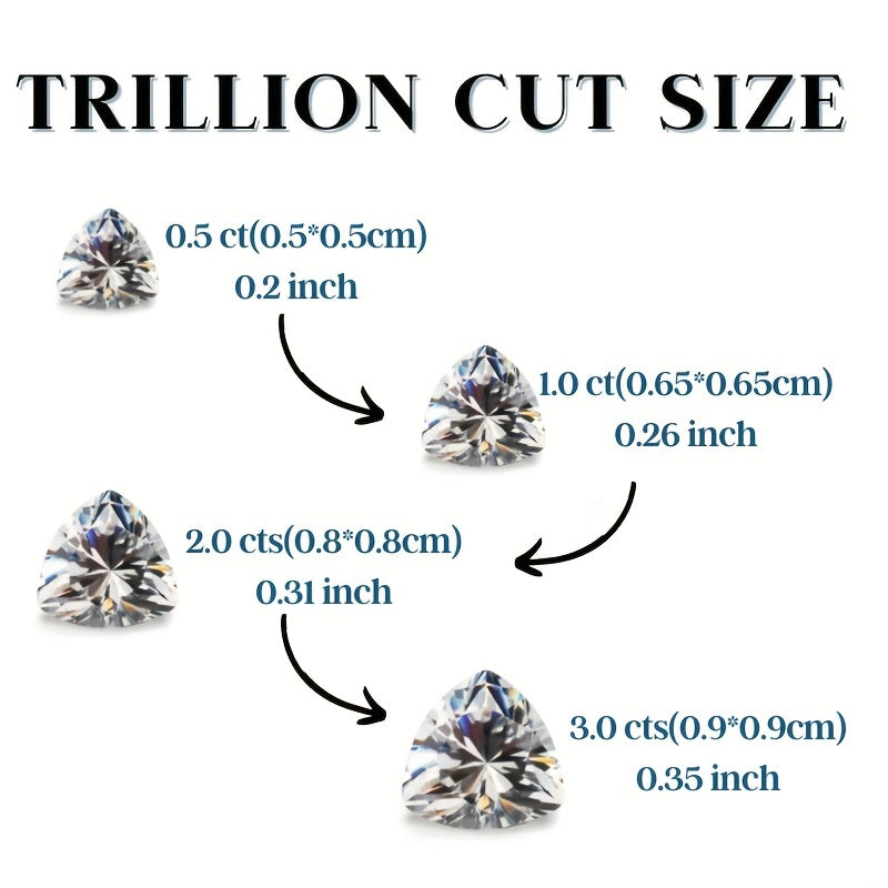 Stunning 1ct trillion cut moissanite loose stone with excellent cut. Lab created with D color and VVS1 clarity, perfect for jewelry making.