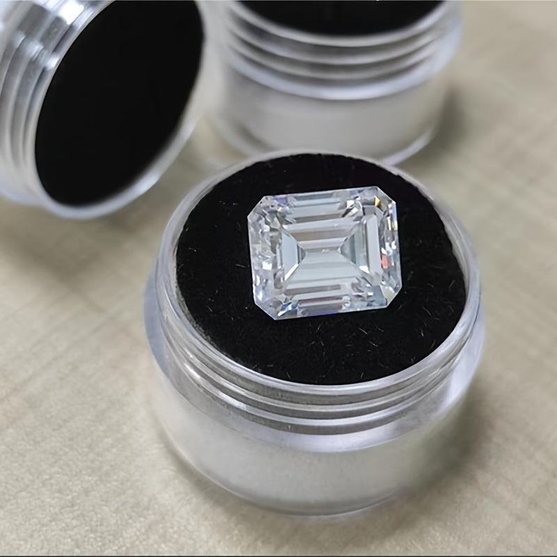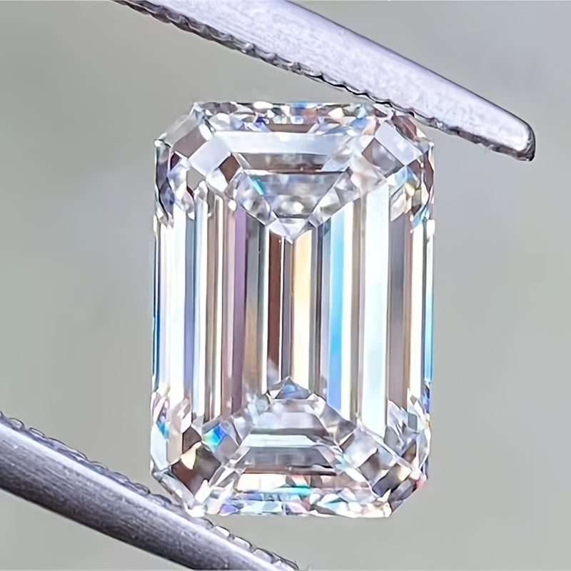 Add a touch of elegance with this emerald cut moissanite rhinestone. It features a D color grade and VVS1 clarity for a high-end look.