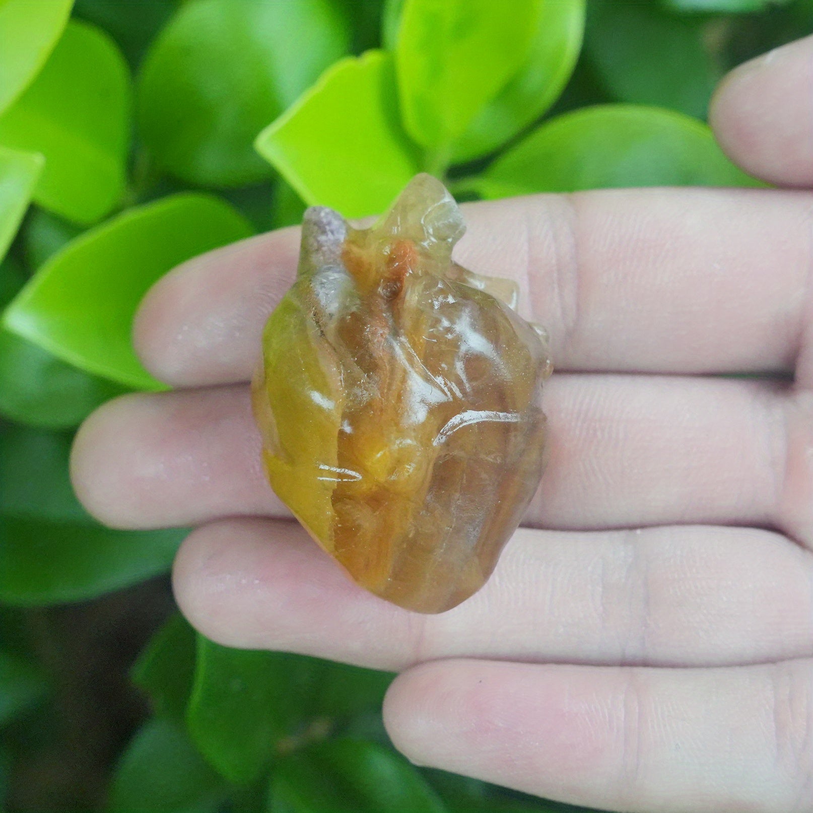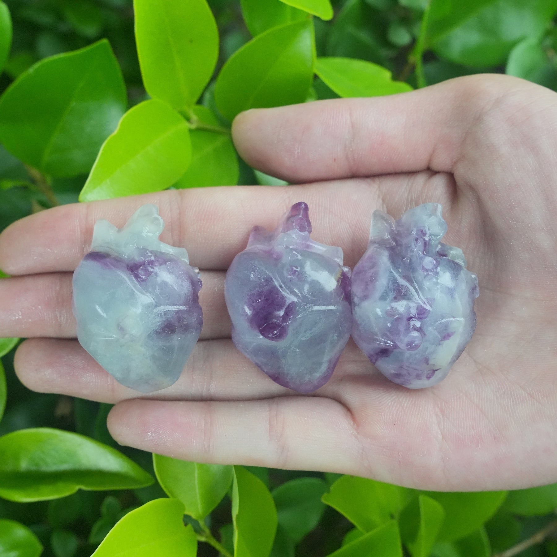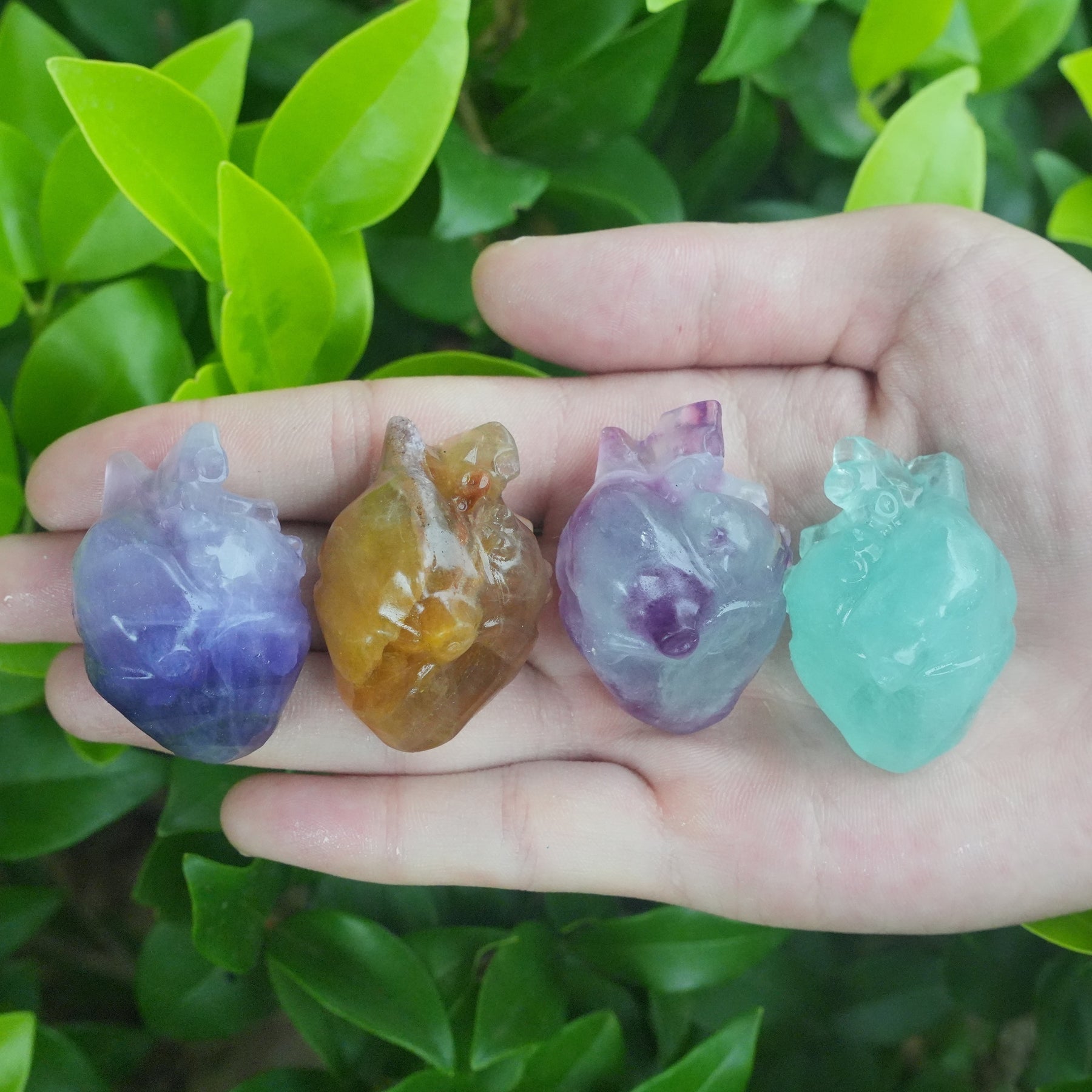 1PC Fluorite Heart Shape Natural Crystal Carving Healing Stone