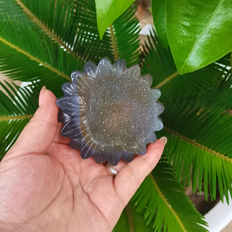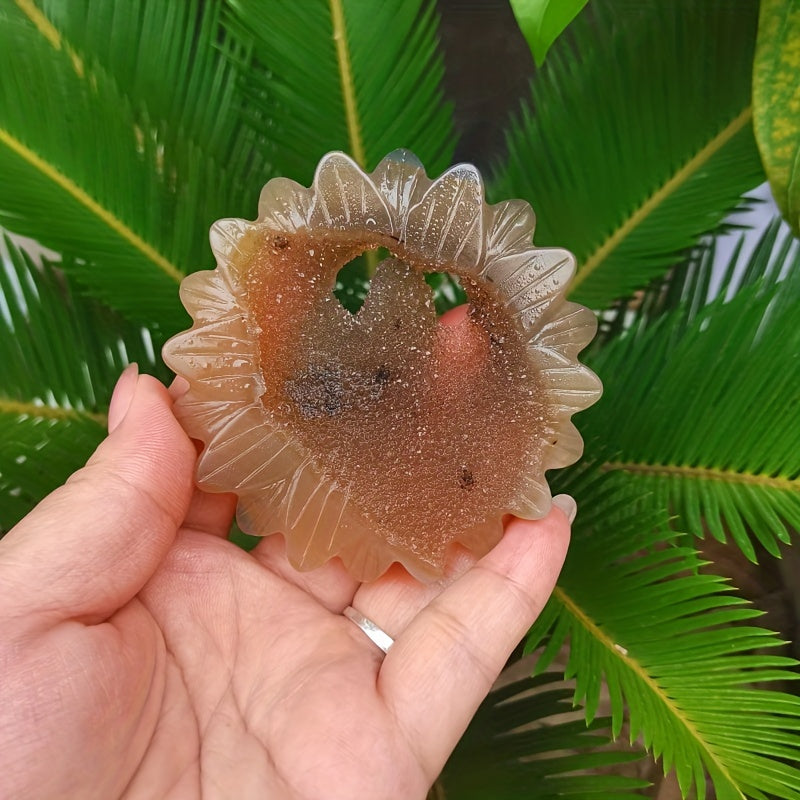 Bring self confidence, self esteem, creativity, and sexual energy to your home with this beautiful geode agate sunflower carving. Perfect for holiday decoration.