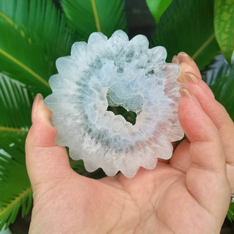 1PC Natural Geode Agate Sunflower Carving for Reiki Healing Energy
