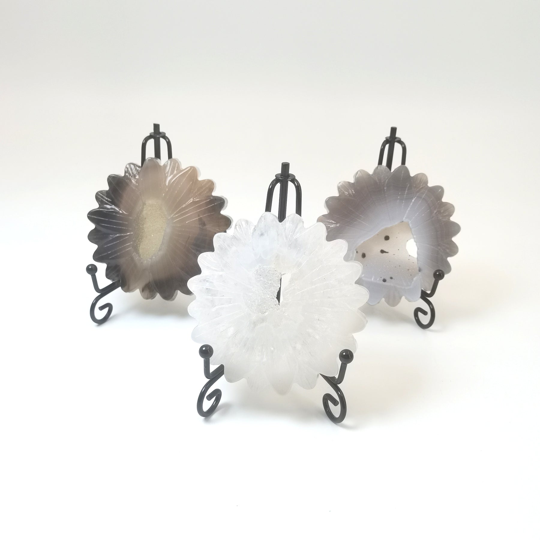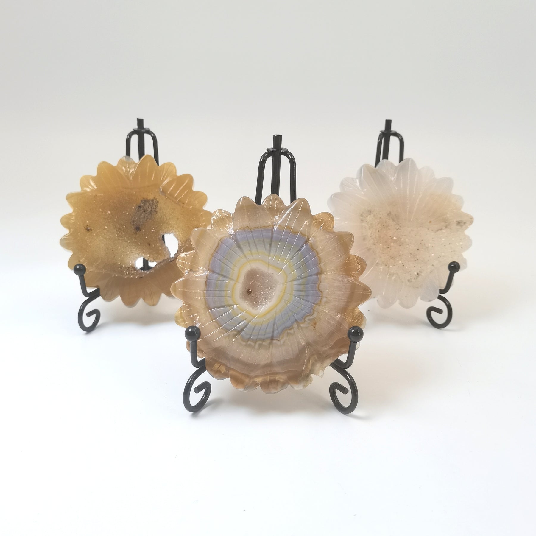 • Made from natural geode agate with sunflower carving