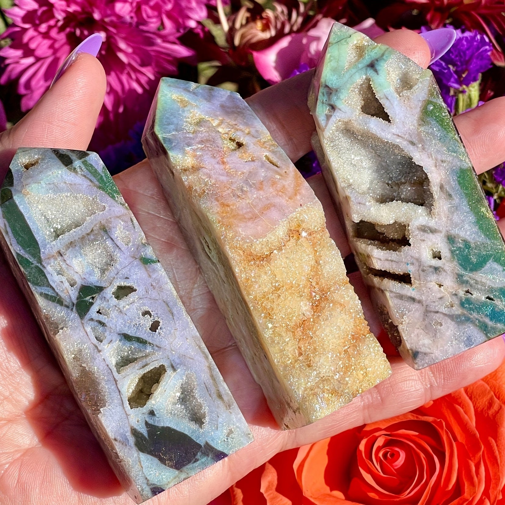 Beautiful natural Sphalerite obelisk quartz tower crystal, perfect for healing and decoration.