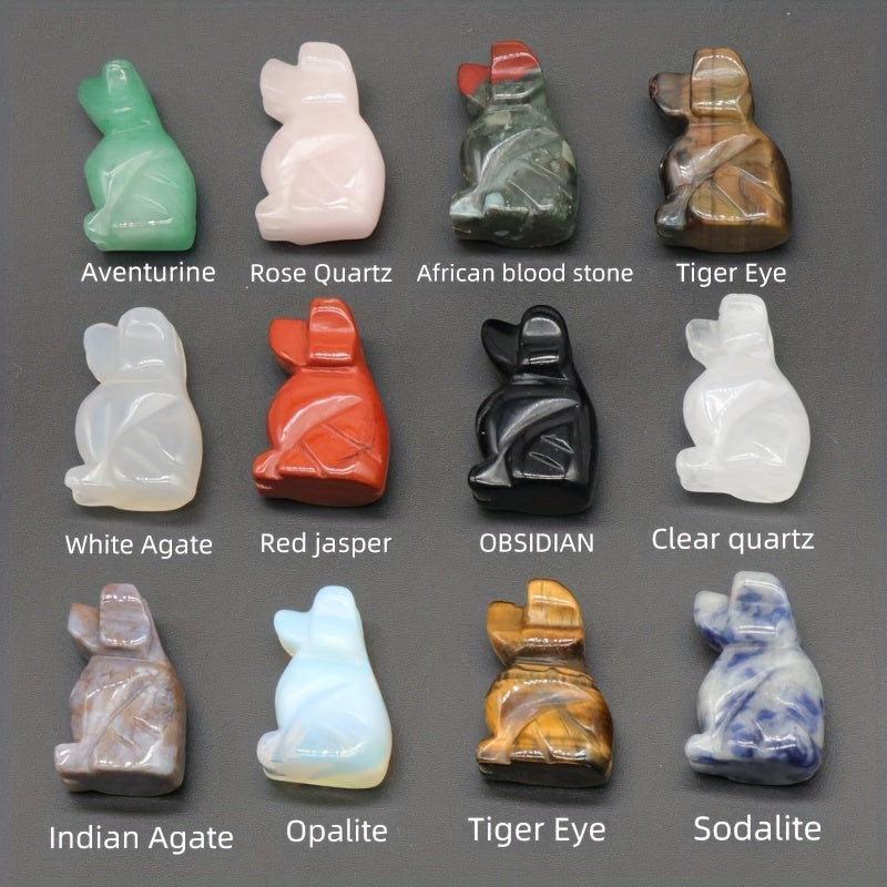 This set includes 2 mini dog engraved chakra healing crystals, perfect for DIY projects, decorations, and kids' birthday parties. Each crystal is 1 inch in size and comes in a variety of vibrant colors.
