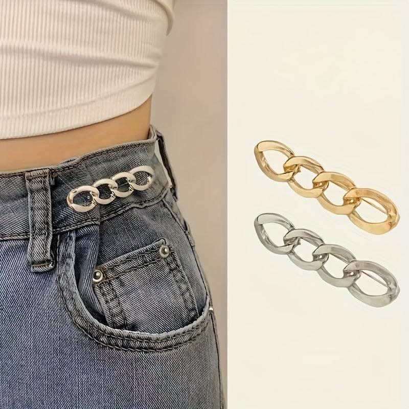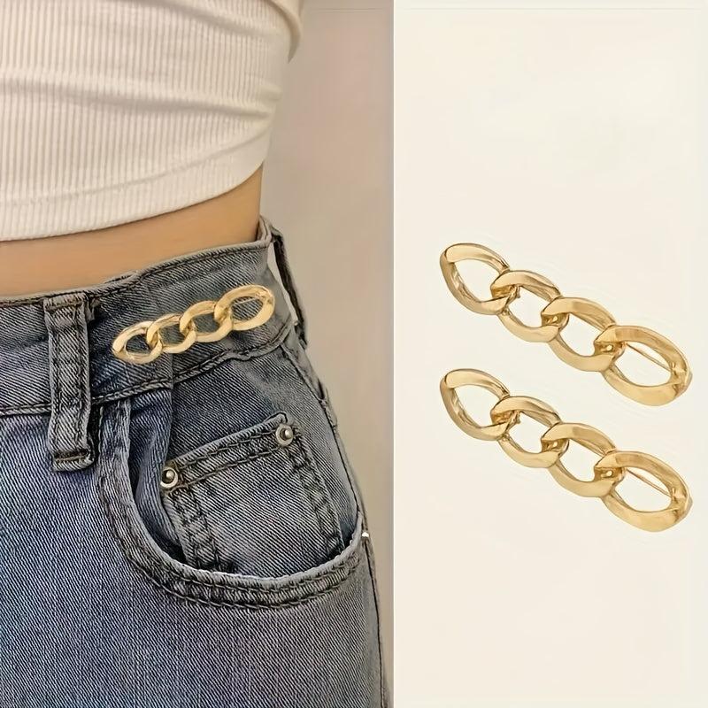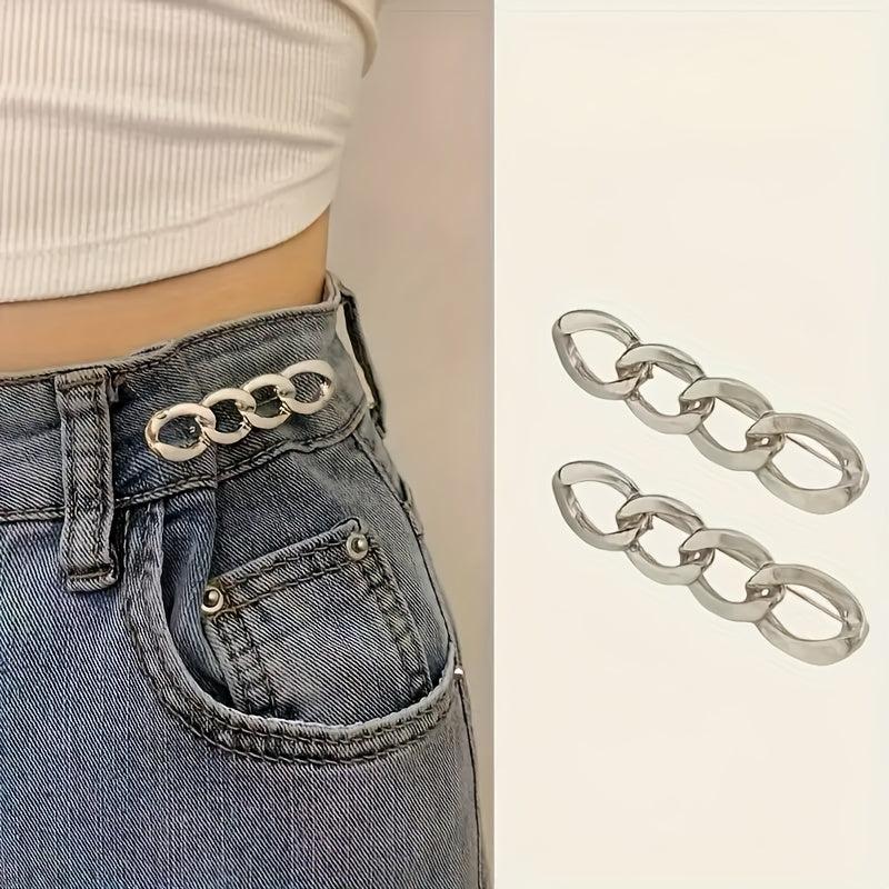2 Pack Chain Link Jeans Waist Belt - Adjustable Detachable No Sew Closure