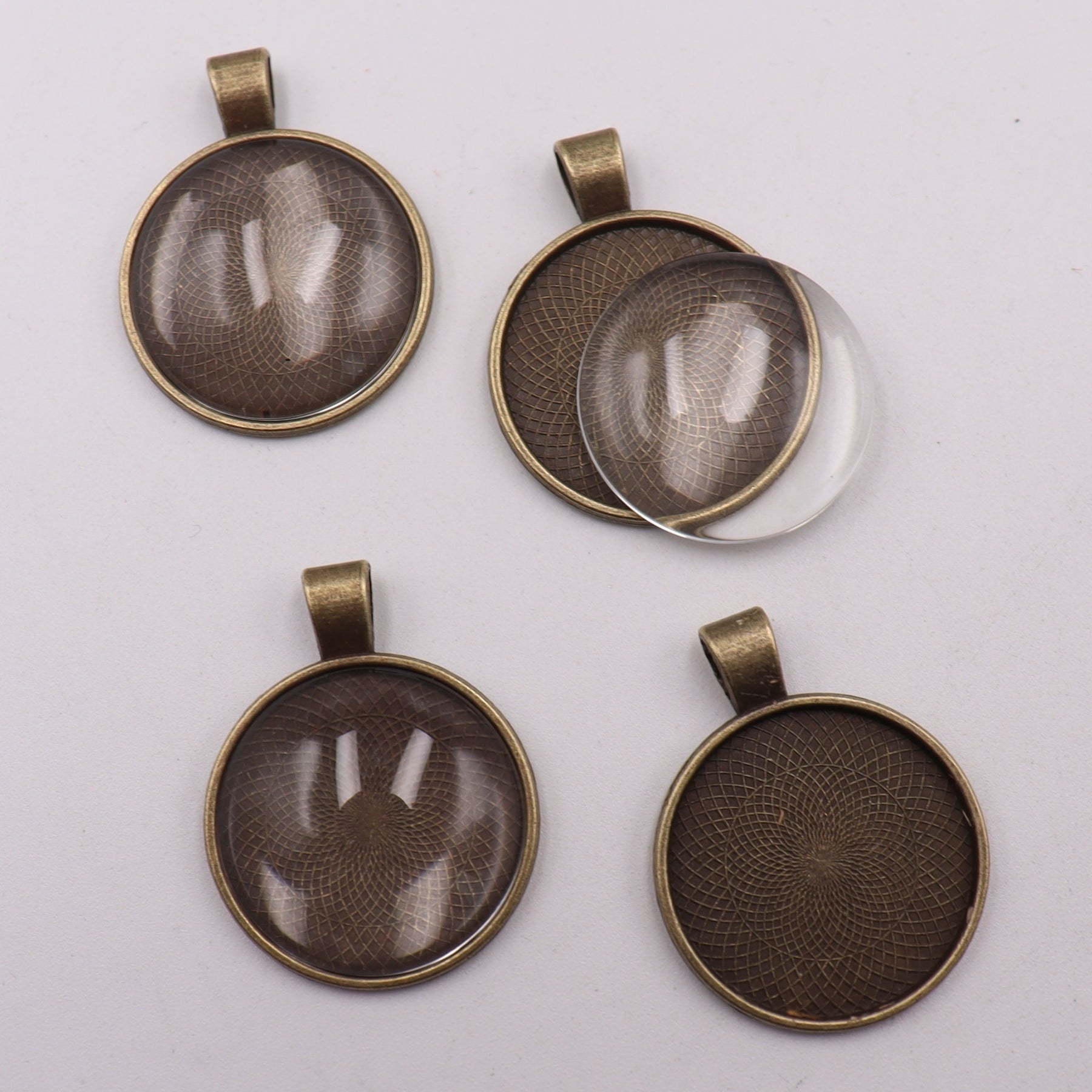 Elegant and simple pendant setting designed for DIY photo jewelry making. This set includes 25 round pendant settings with a 2 frame convex blank base. Add your own photo or design to create unique and personalized accessories.