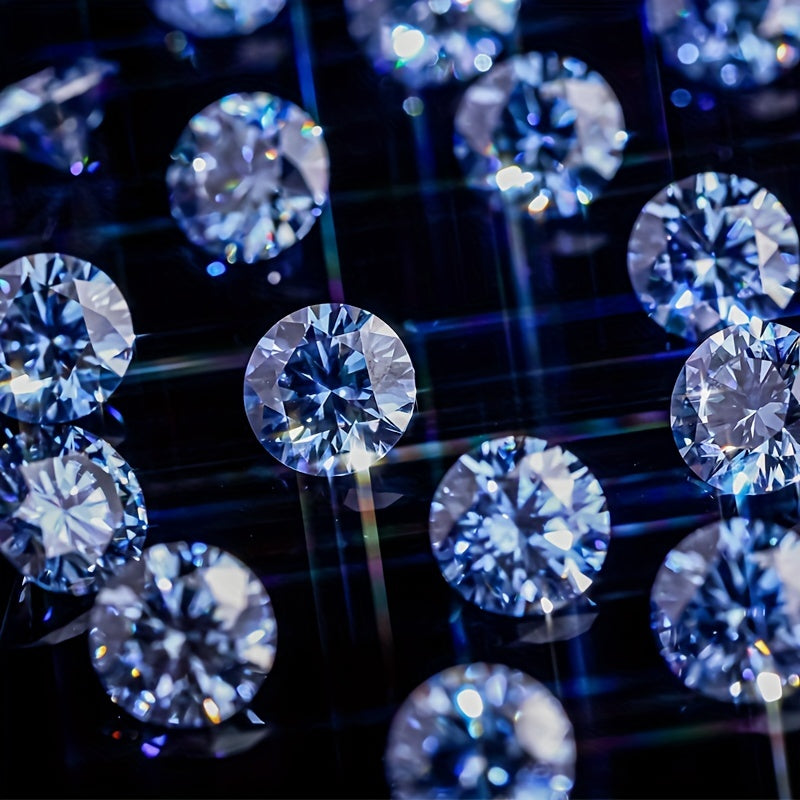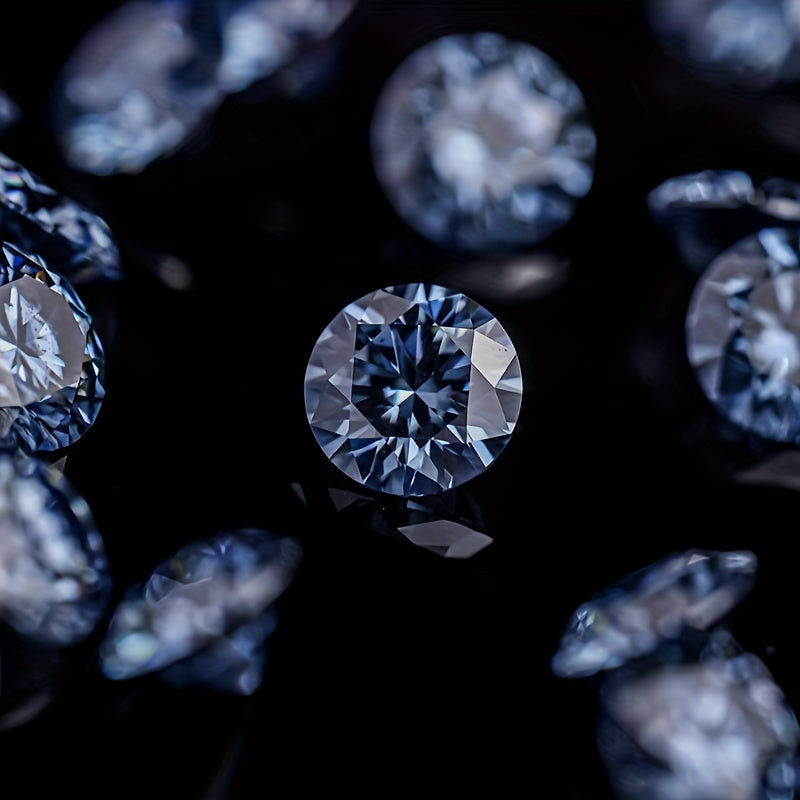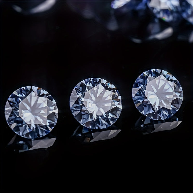 This exquisite 3 carat round moissanite features a stunning Hearts & Arrows cut, simulating the brilliance of a sapphire gray gemstone.