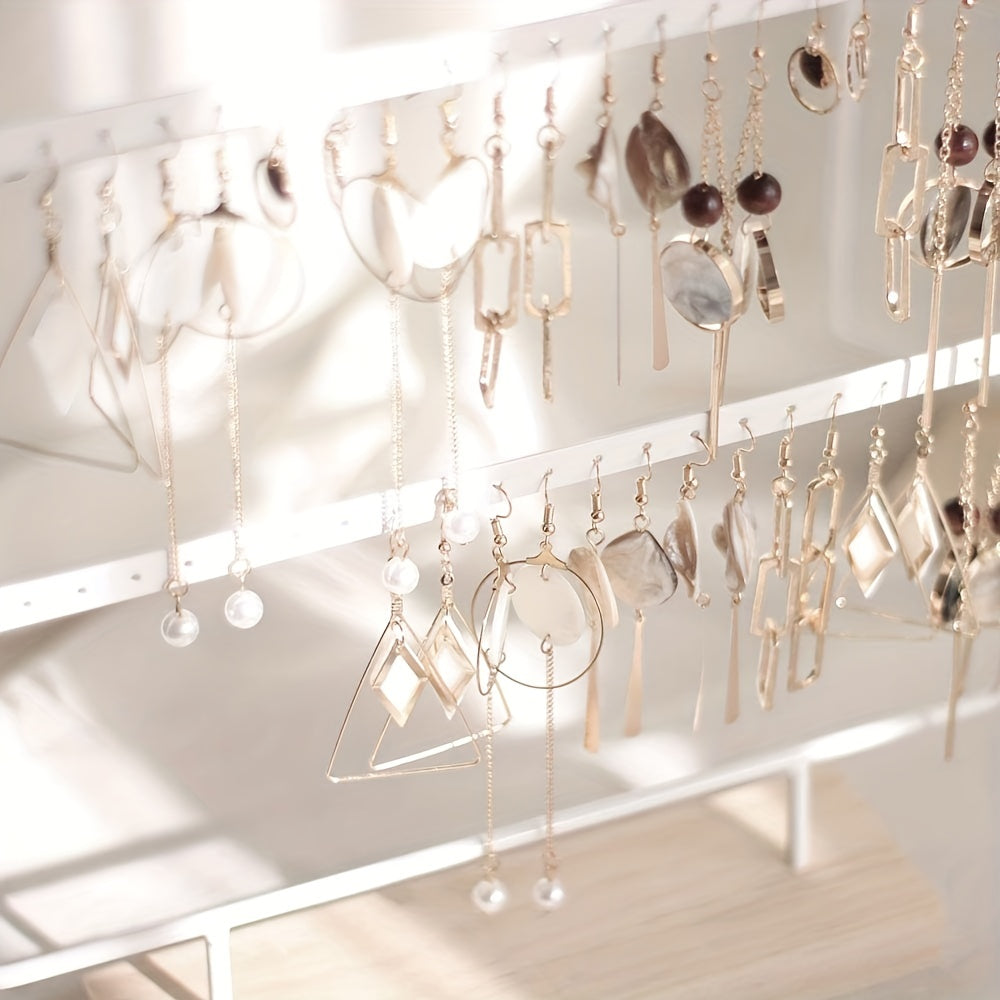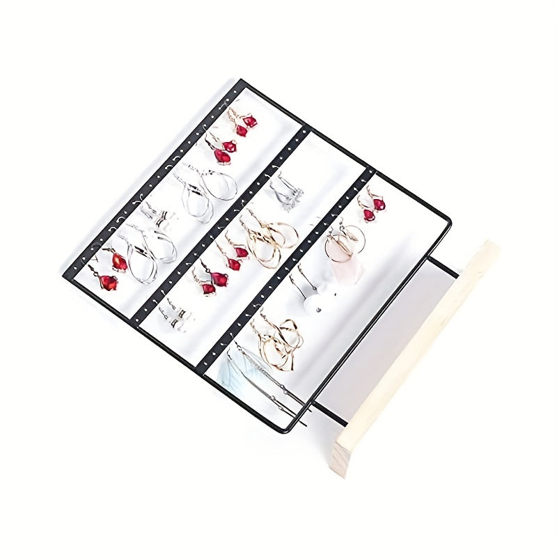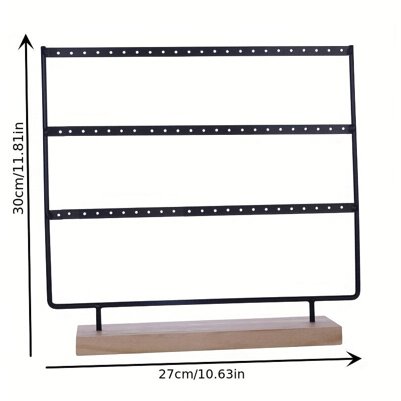 Keep your earrings organized and easily accessible with this 3-layer earring holder. With a wood base stand, this holder is a practical and stylish way to showcase your jewelry collection.