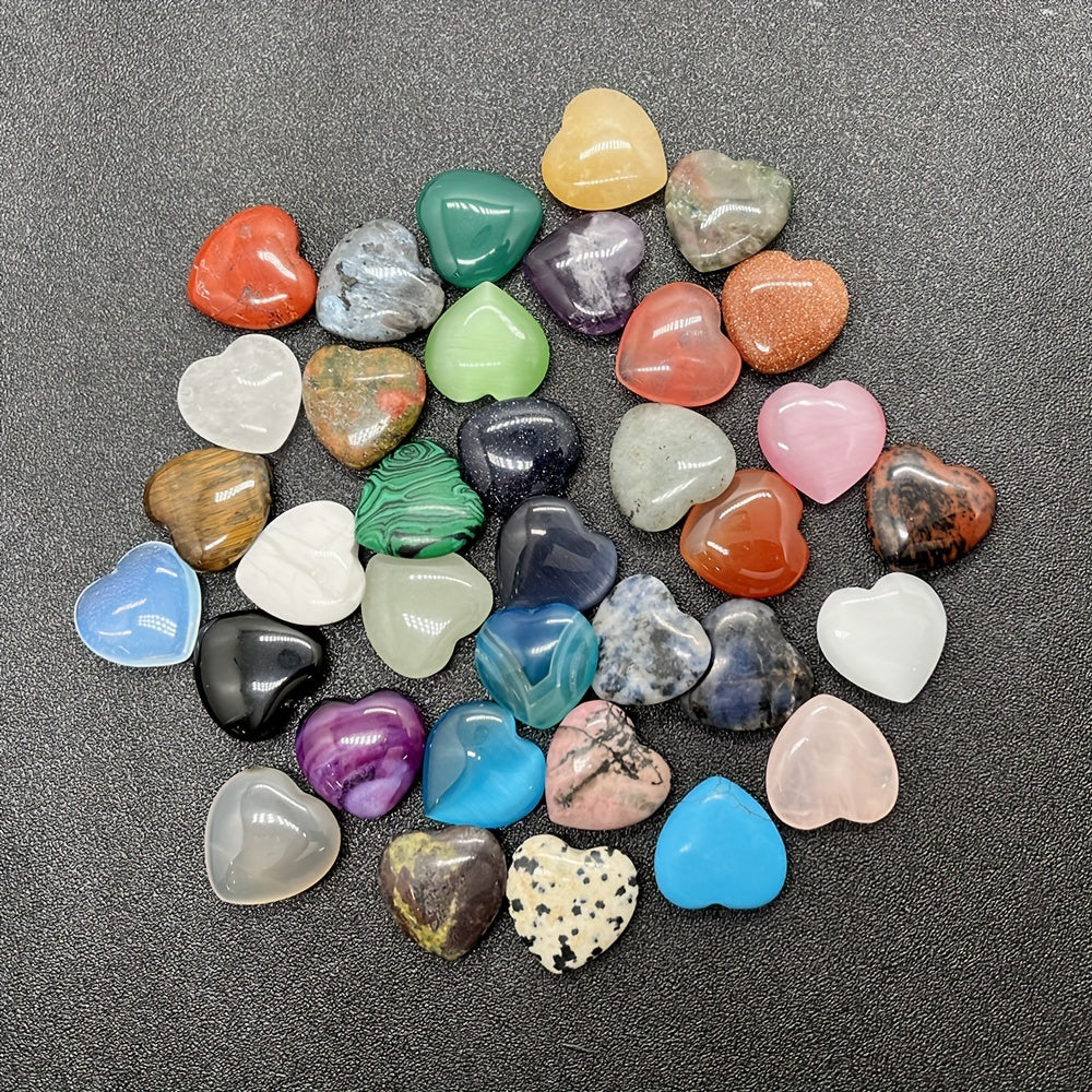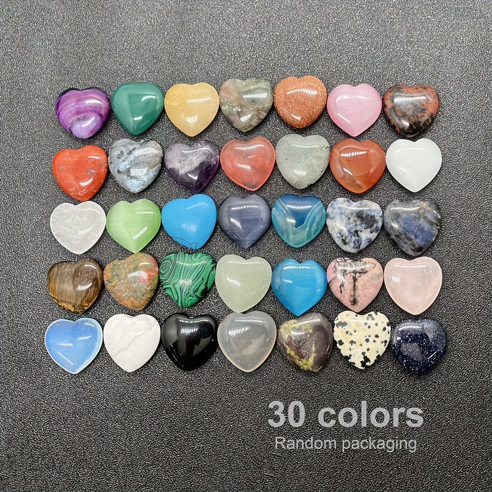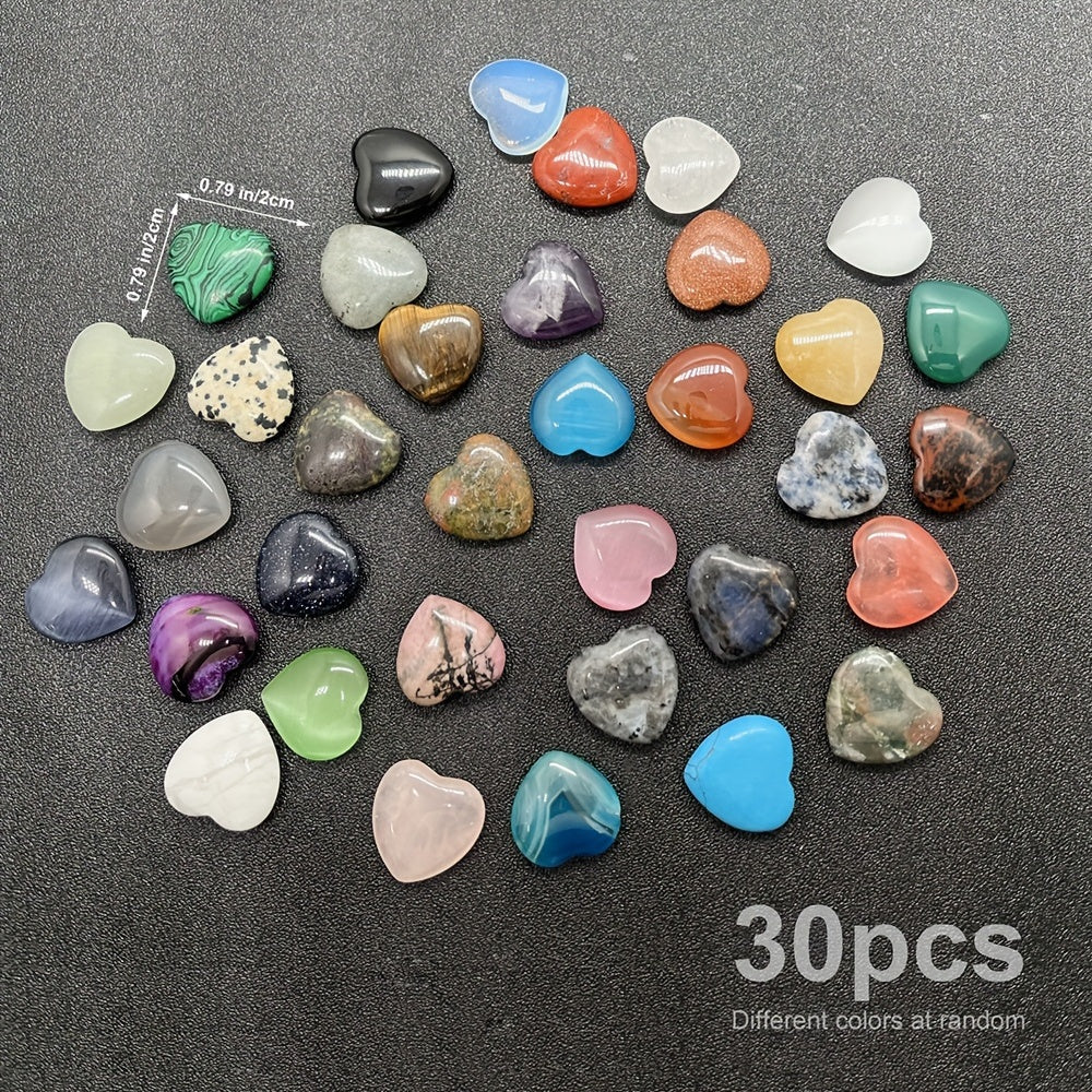 Enhance your well-being with this set of 30 different colored heart-shaped healing stones. Each stone measures 0.78 inches and is perfect for meditation, reiki, or as a thoughtful gift.