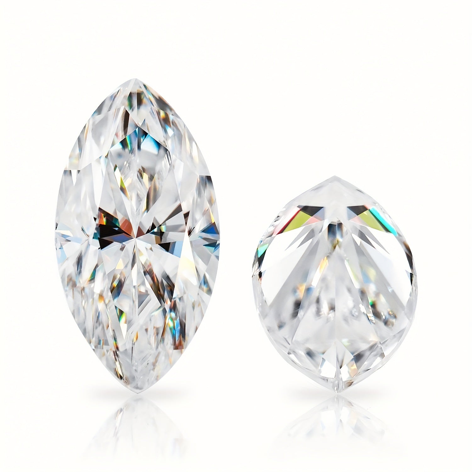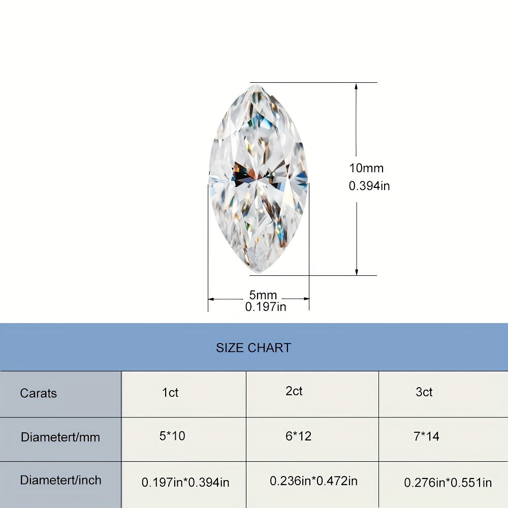 High-quality D Marguise Shape Moissanite stone with 3EX cut for stunning jewelry. Engraved code ensures authenticity.