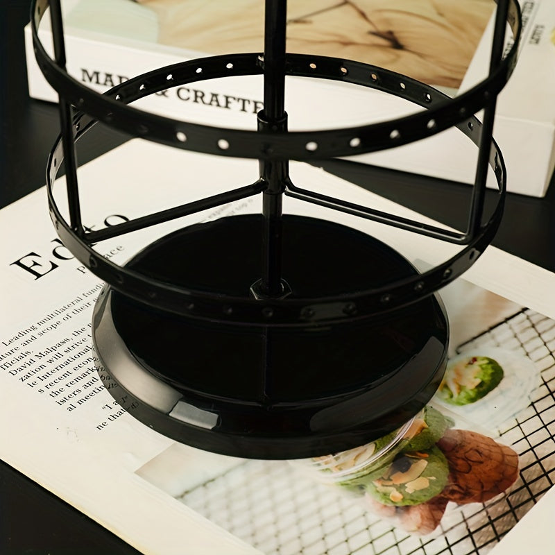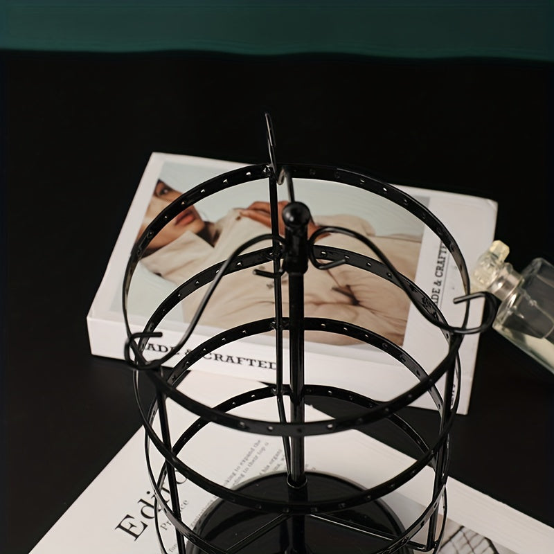 Keep your earrings organized with this sleek metal rotating earring holder. Perfect for displaying your favorite jewelry pieces.