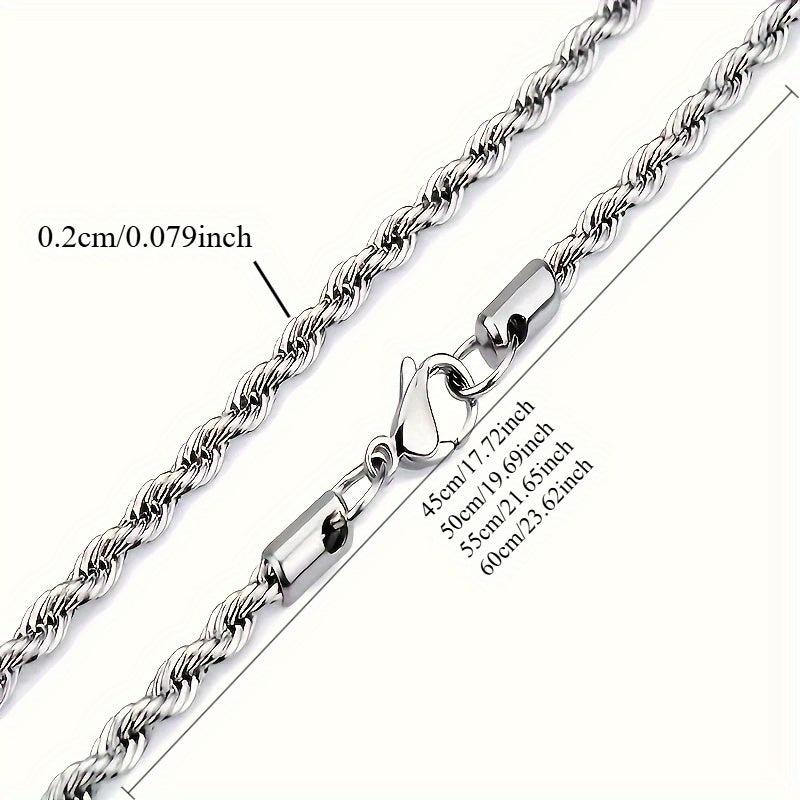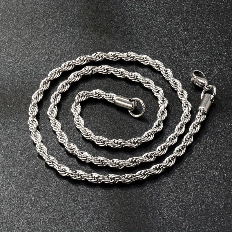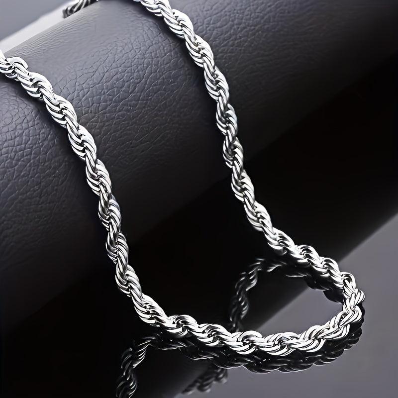 This stainless steel twisted chain necklace is durable and fashionable. Silvery plated for a sleek look, it's perfect for men and women alike. Available in 18 or 24 inches.