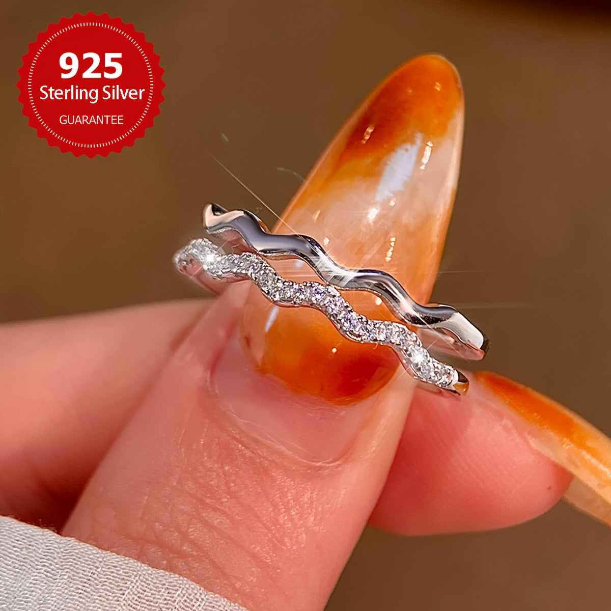 This stunning ring features two bands of 925 sterling silver and sparkling cubic zirconia stones. Perfect for any special occasion!