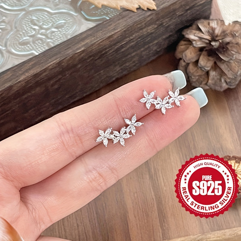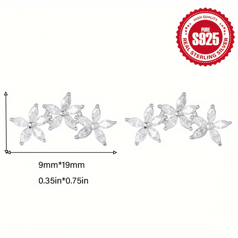 925 Silver Five Petal Earrings Minimalist Blingbling Gift for Women