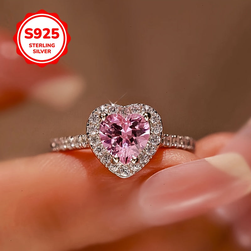 This stunning 925 sterling silver heart-shaped open ring features a pink cubic zirconia stone. It is perfect for couples, friends, and special occasions. The ring is adjustable and lightweight, making it comfortable to wear.