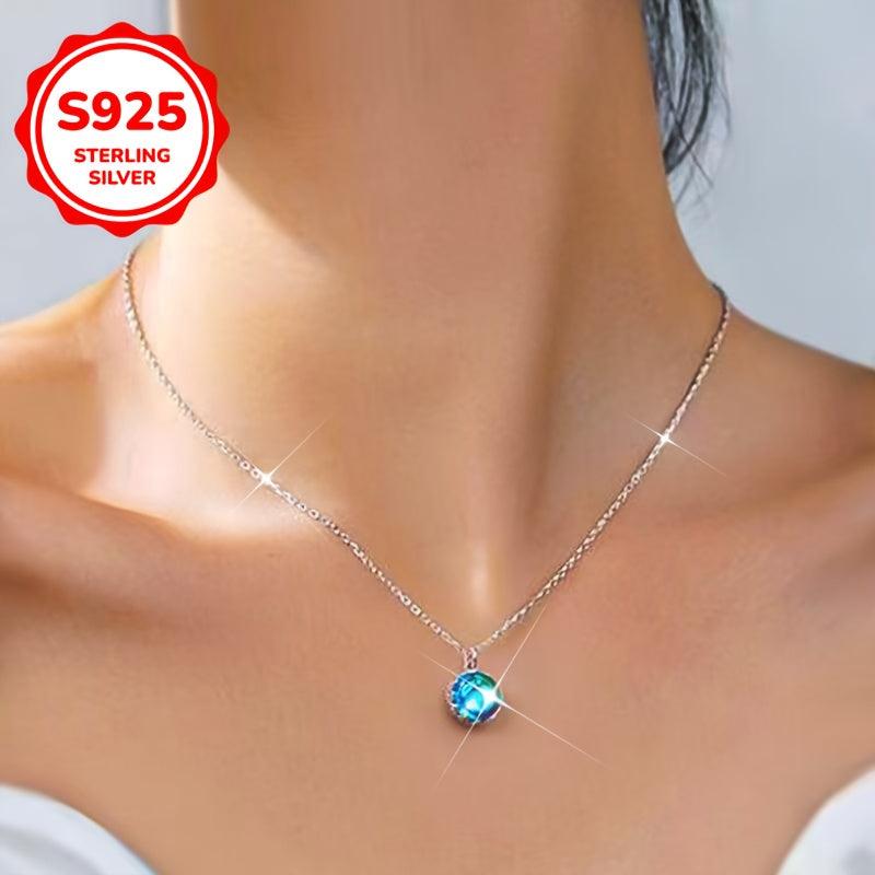 This elegant 925 sterling silver necklace features a sparkling zirconia pendant. It is perfect for women, couples, and friends. Ideal for Mother's Day, beach outings, music events, and casual wear.