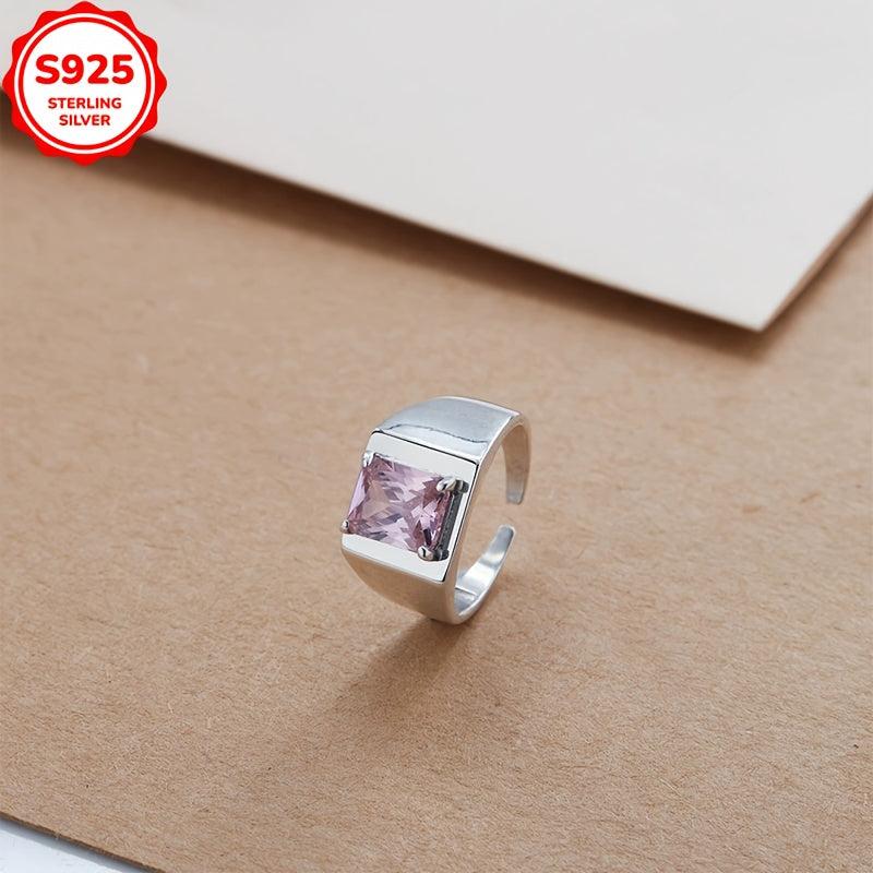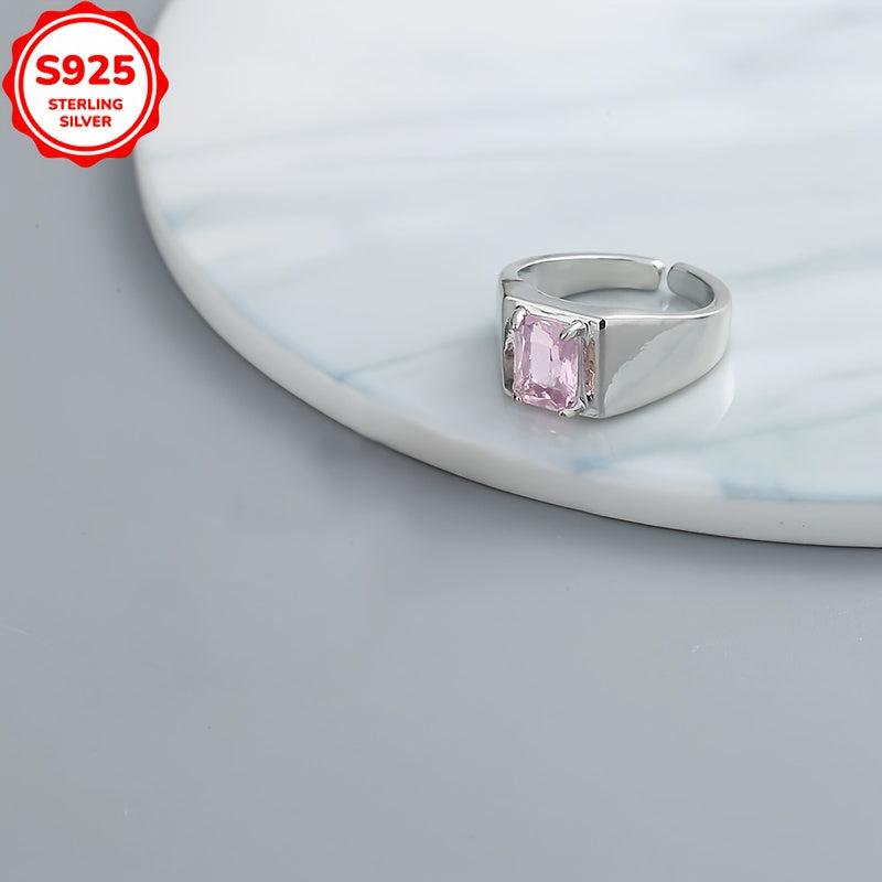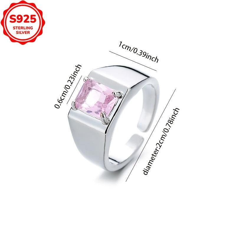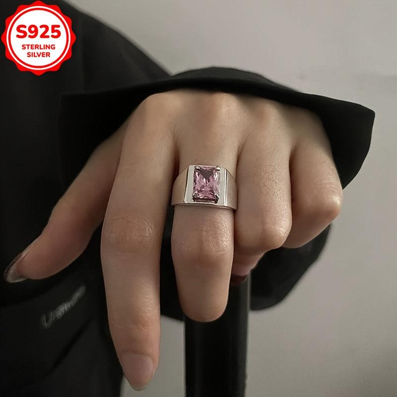 Stunning 925 sterling silver ring featuring a pink gemstone set in a wide band with sparkling cubic zirconia accents. Perfect for Valentine's Day or everyday wear.