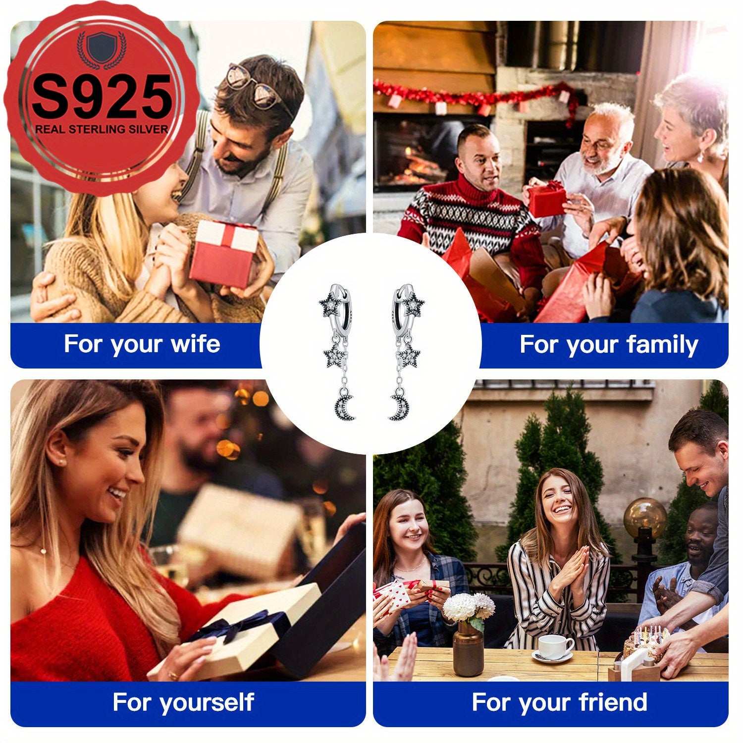 Add a touch of celestial charm with these minimalist earrings featuring synthetic stones. Ideal for parties and gifts.