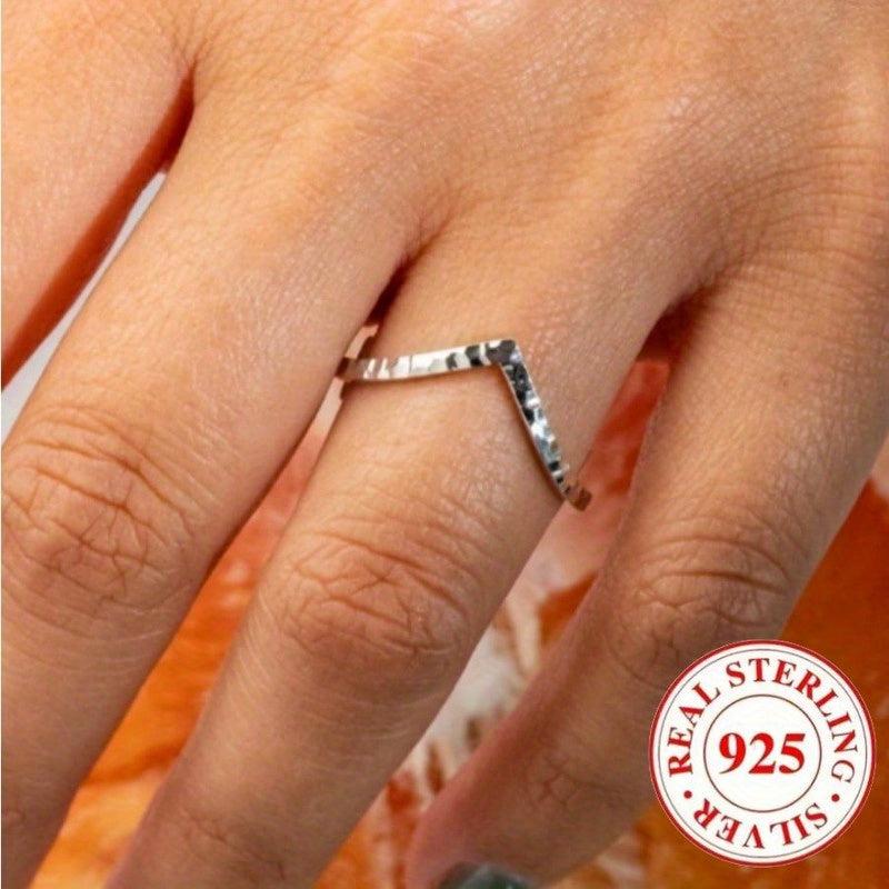 Elegant and timeless 925 pure silvery ring with a classic retro V-shaped hammer pattern design, suitable for daily wear or party events.