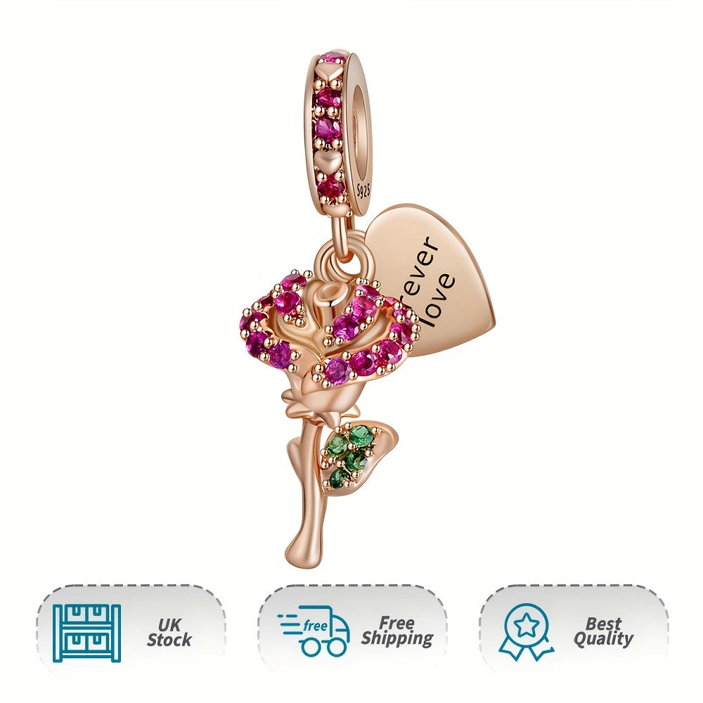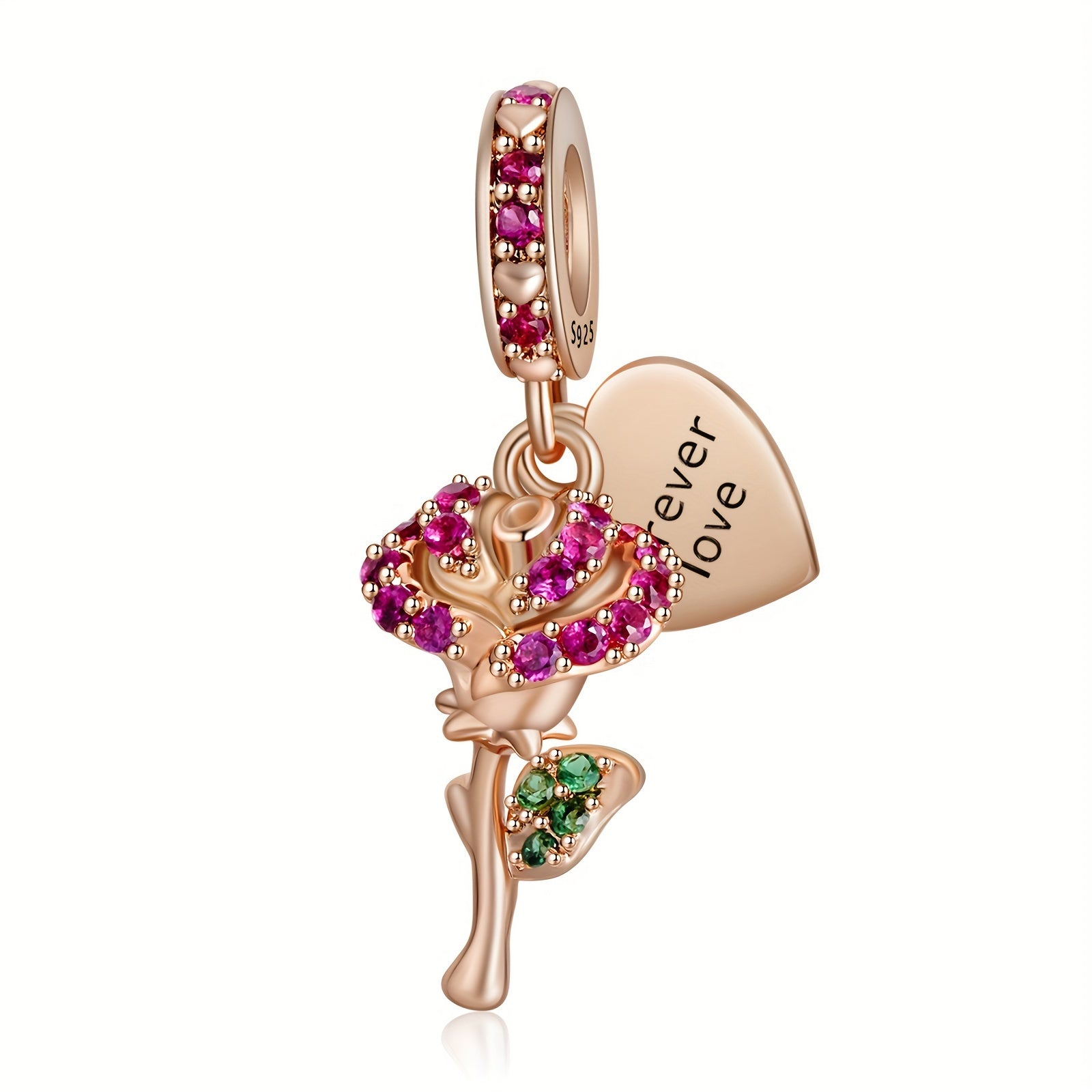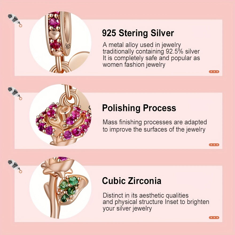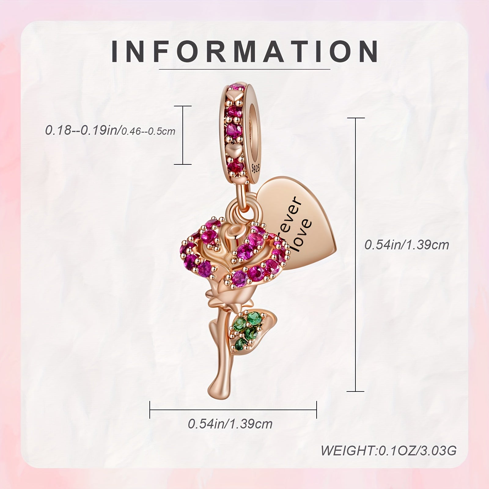 Add a touch of elegance with this lovely 925 sterling silver rose flower charm pendant, perfect for creating moments of love and happiness on your favorite bracelet or necklace.