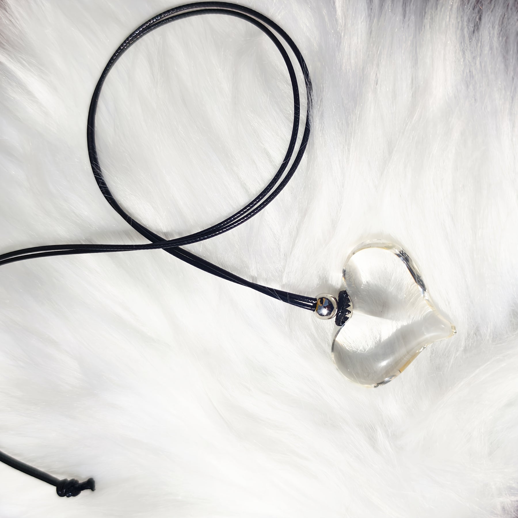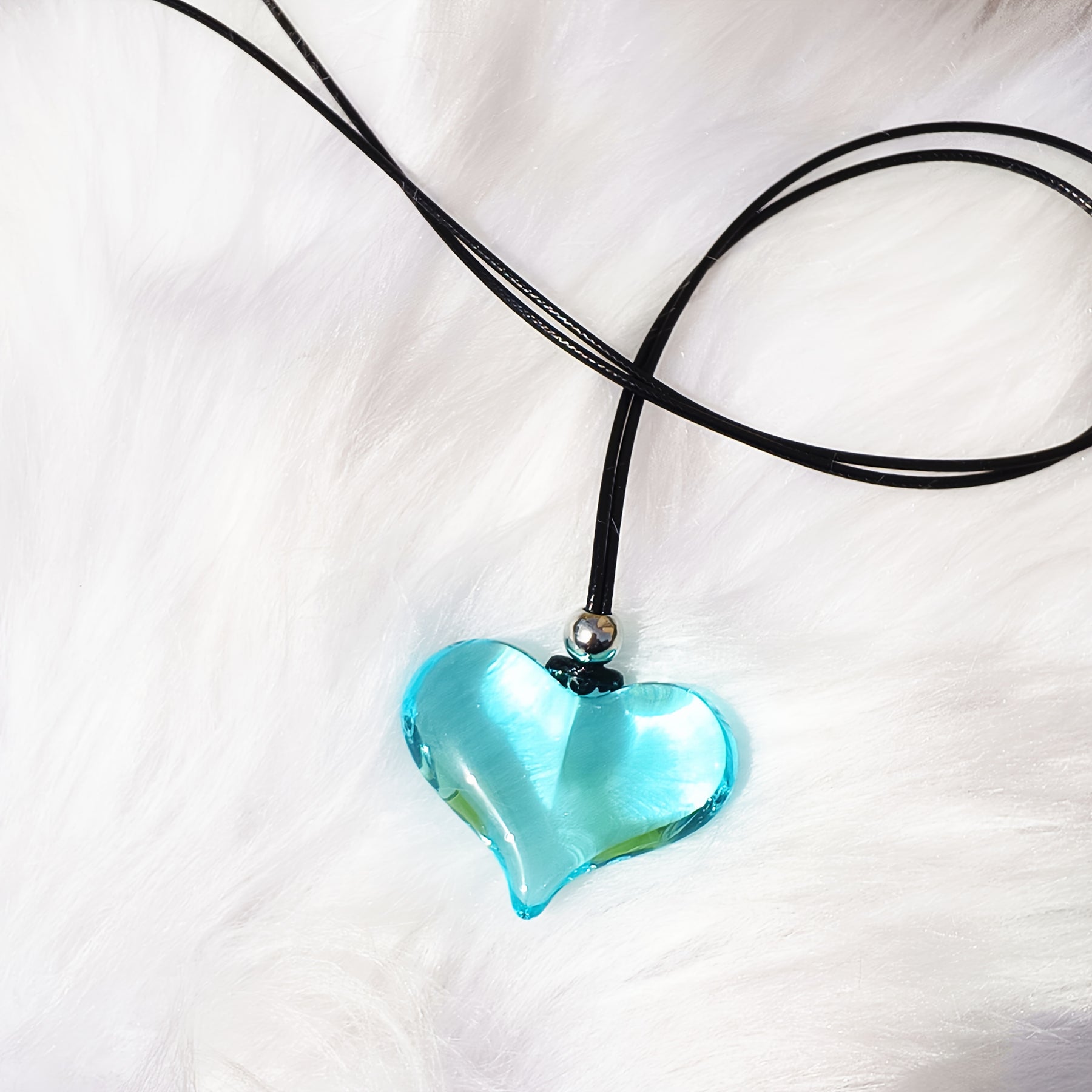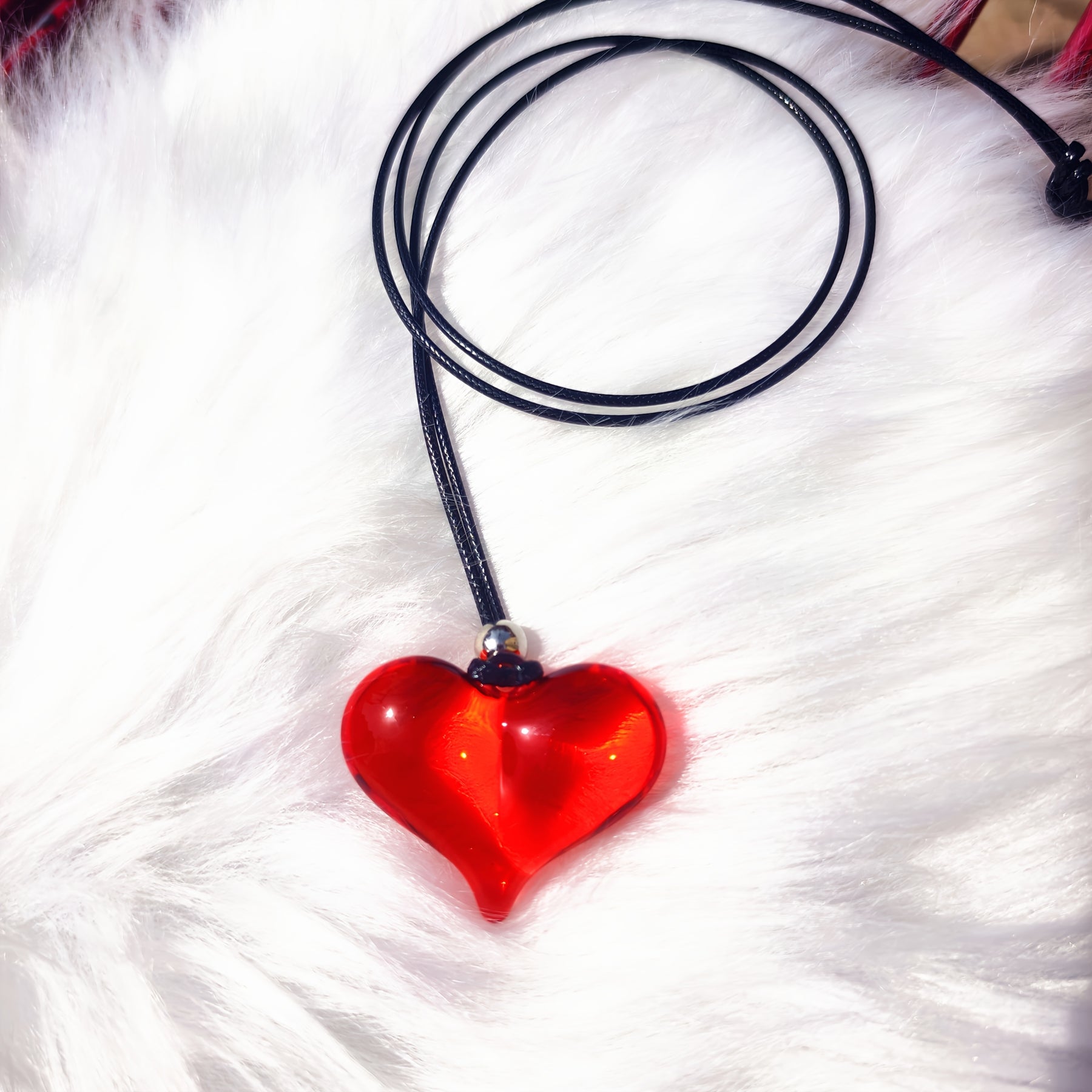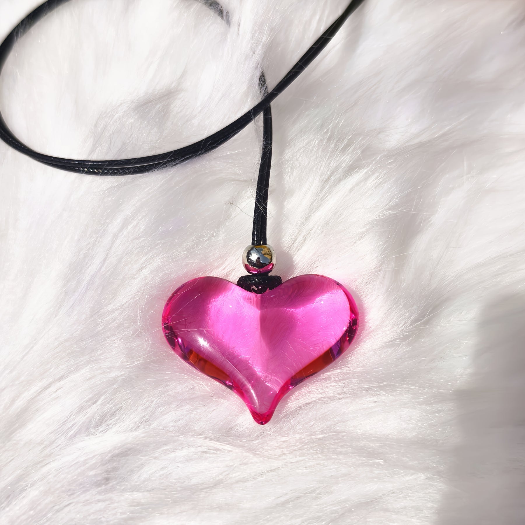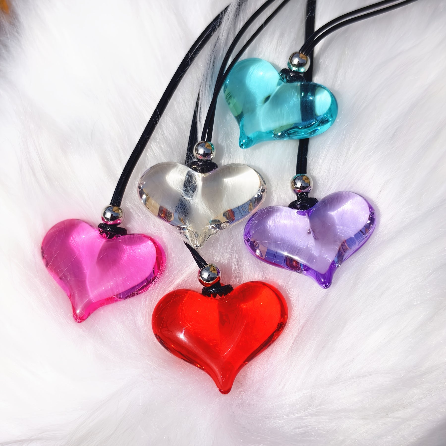 This lightweight and durable necklace features a transparent acrylic heart pendant with colorful charms, perfect for adding a fun pop of color to any outfit.