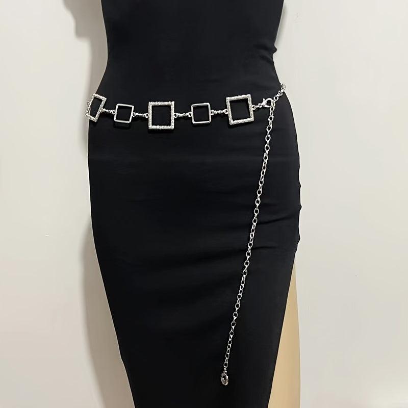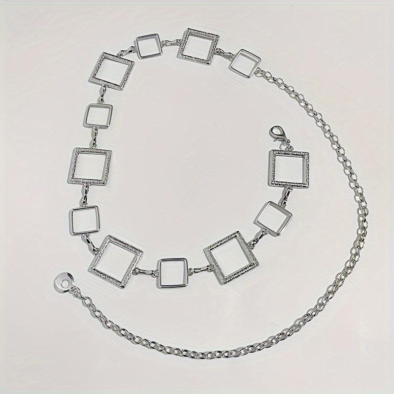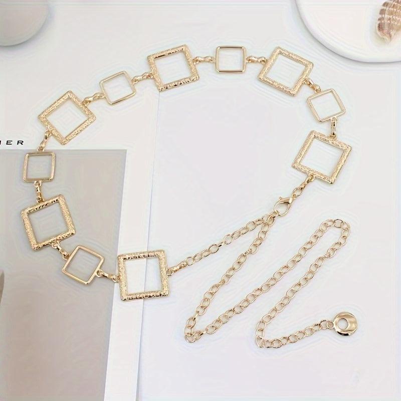 Adjustable Golden Square Waist Chain Belt Y2K Punk Style Hollow Metal