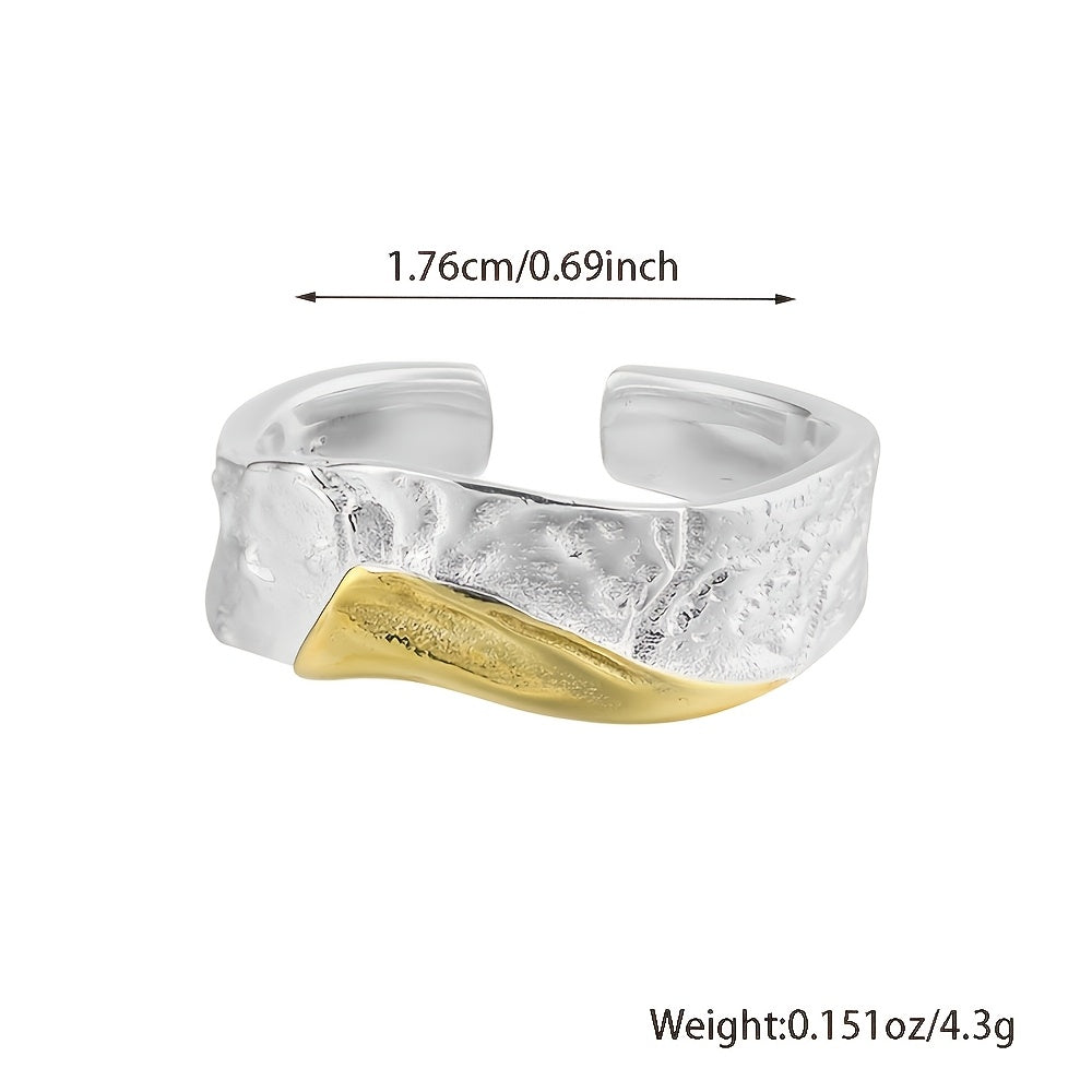 This stylish ring is made of 925 sterling silver with a textured two-tone finish. Its irregular geometric design makes it perfect for banquets and gifting throughout all seasons.