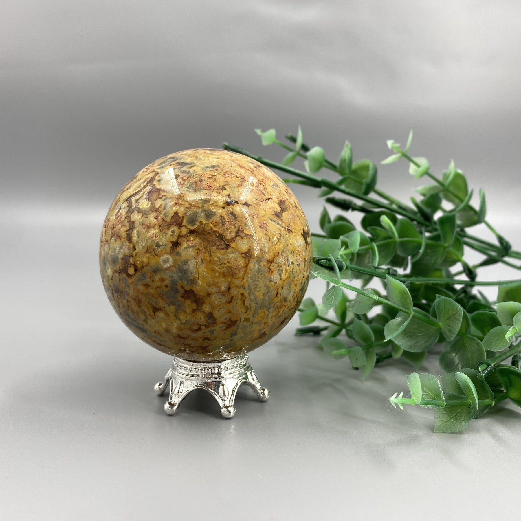 Enhance your meditation, yoga, reiki, and chakra practices with this natural agate sphere crystal ball. Experience relief and energy alignment.