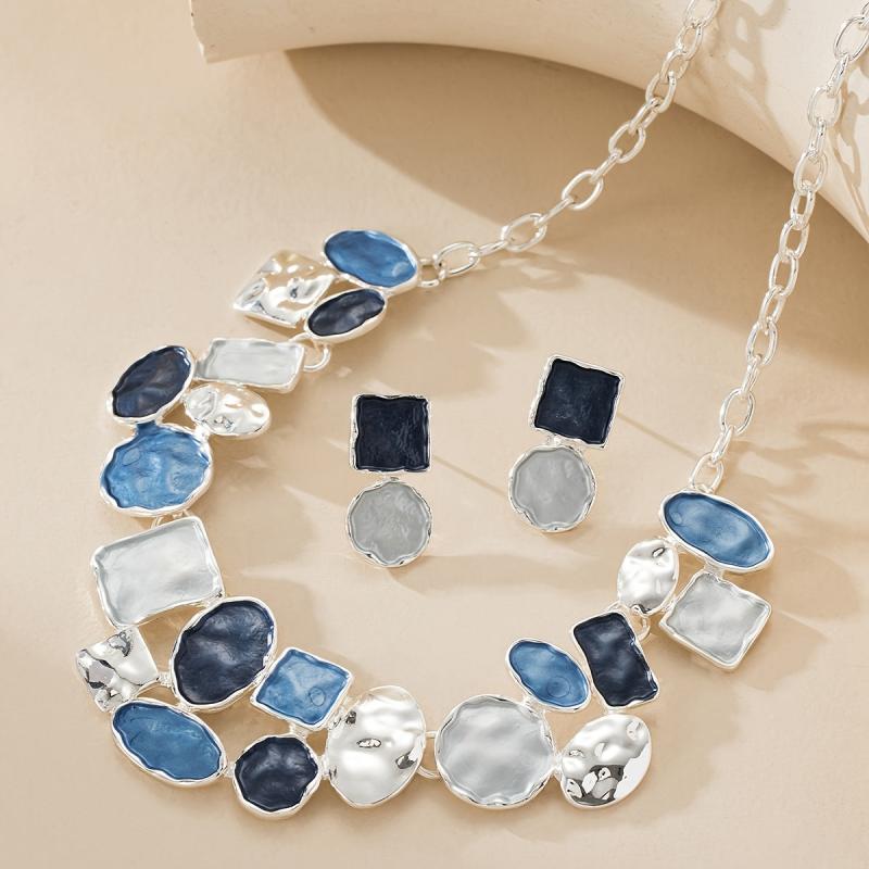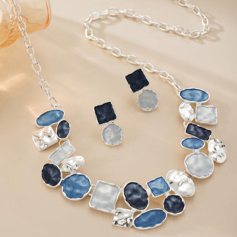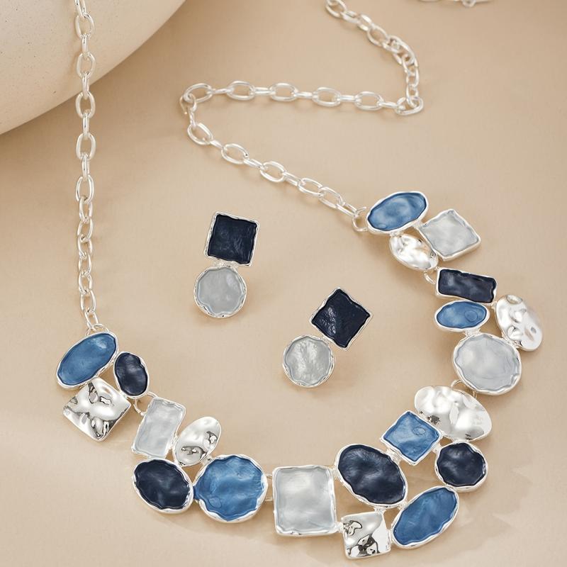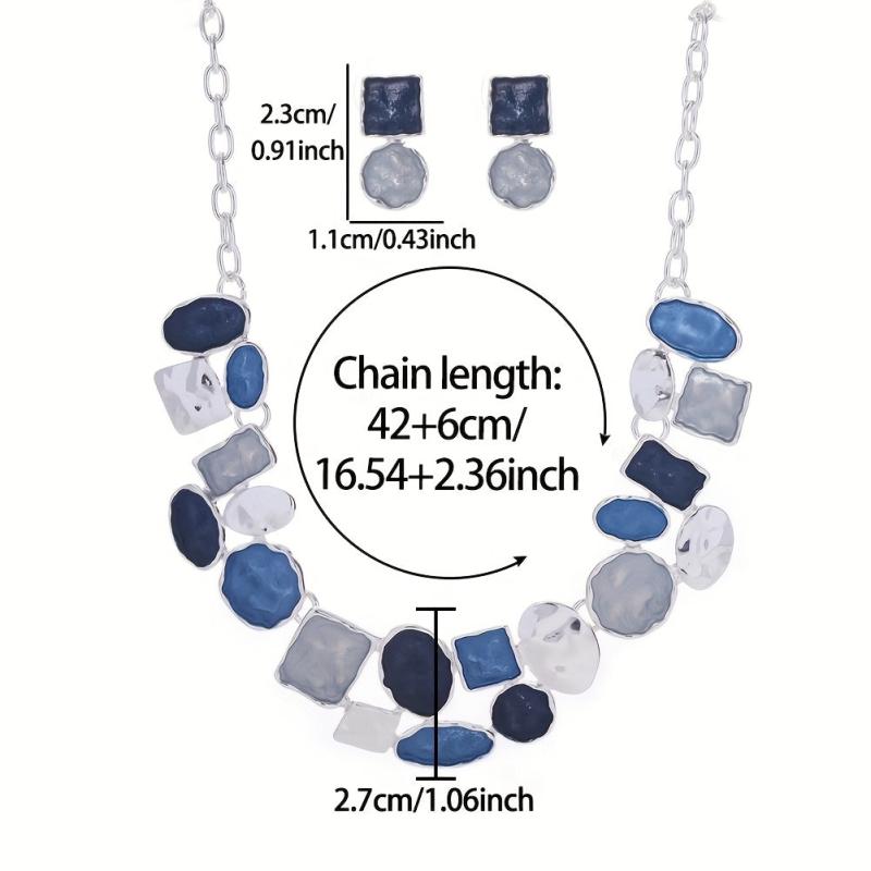Add a touch of bohemian charm with this set of 3 earrings and 1 necklace, featuring a sexy and exaggerated design. Made of zinc alloy with enamel and silvery plating, perfect for parties and weddings.