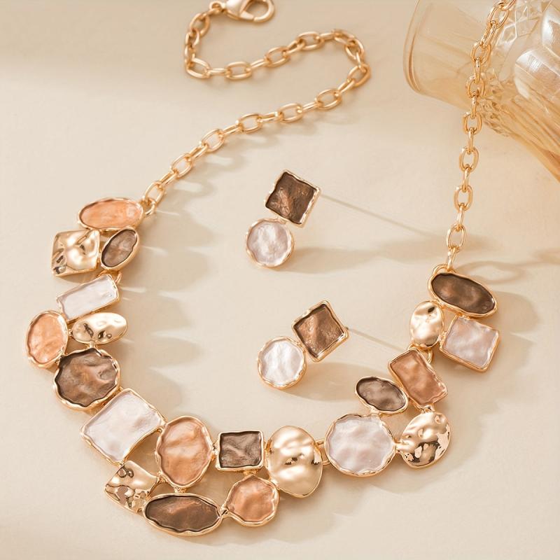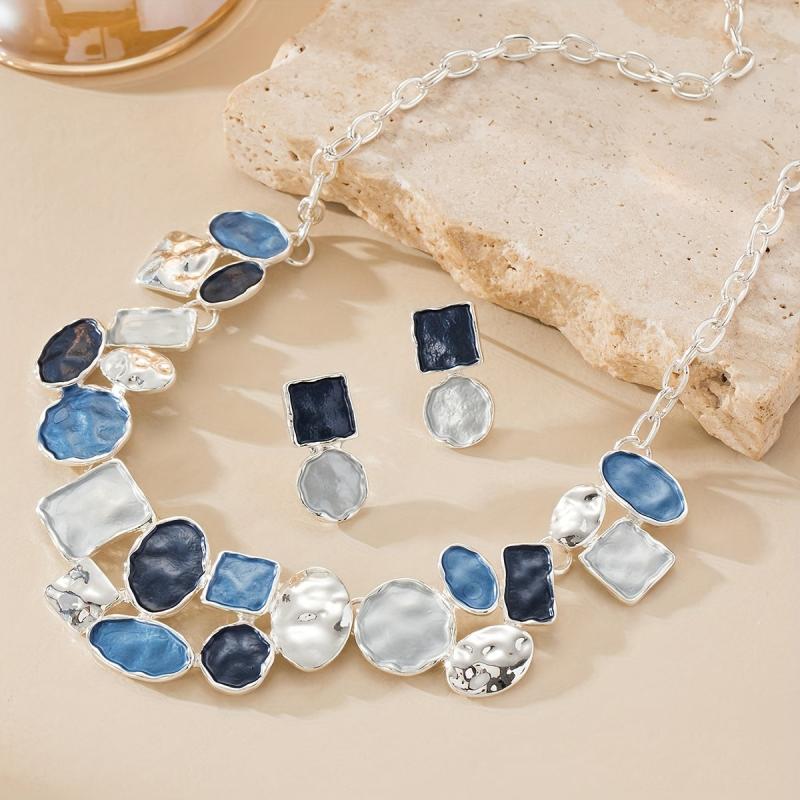 Bohemian Exaggerated French Chain Earrings Necklace Set
