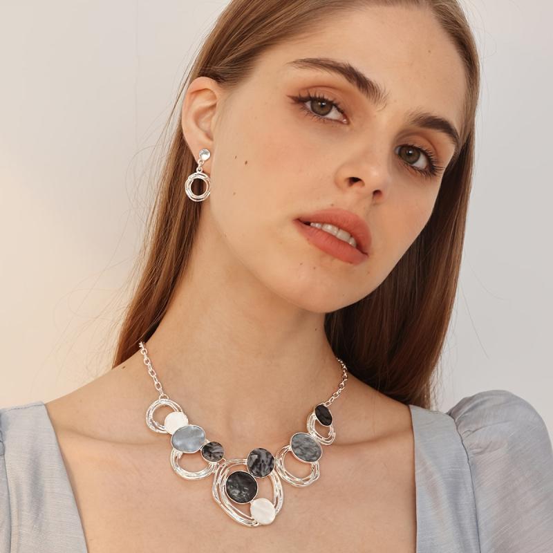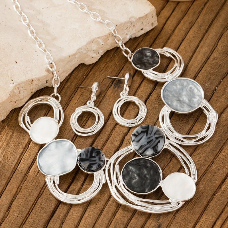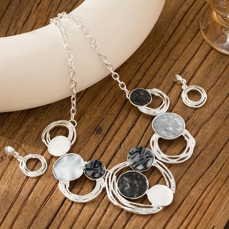 Complete your look with this bohemian jewelry set featuring geometric designs. Made of zinc alloy, perfect for daily wear, dance parties, vacations, and holidays.